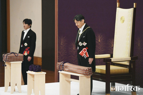 जापानका नयाँ सम्राट नारुहितोले मंगलबार मध्यरातबाट जापानको राजगद्दी सम्हालेका छन्। उनी जापानी राजतन्त्रको इतिहासमा राजगद्दी सम्हाल्ने १२६औं सम्राट हुन्। शाही निसान र छाप हस्तान्तरण गर्ने विशेष समारोहमा उनलाई मंगलबार राति जापानी राजपरम्परामा विशेष महत्व राख्ने एउटा तरबारको प्रतीक, एउटा बहुमूल्य रत्न दिइएको थियो।