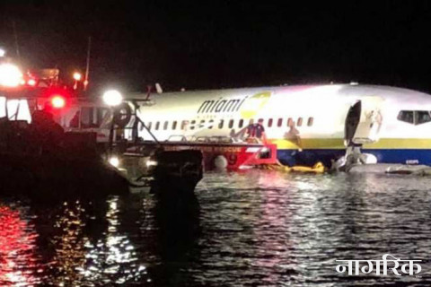 १ सय ४३ मान्छे बोकेको बोइङ ७३७ विमान फ्लोरिडा नदीमा चिप्लिएर खसेको छ। नौसेना एयर स्टेशन जैक्सनविले के एक प्रवक्ताका अनुसार शुक्रबार उक्त विमान ल्यान्डिङ गर्नेक्रममा चिप्लिएर नदीमा खसेको हो। अहिलेसम्म कुनै मनाविय क्षति भएको जानकारी आएको छैन्।