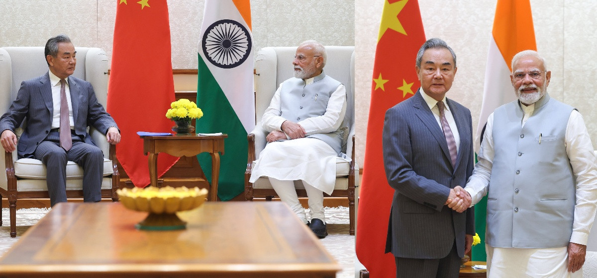 चीनका विदेशमन्त्री वाङ यीले भारतीय प्रधानमन्त्री नरेन्द्र मोदीसँग भेट गरेका हुन्।