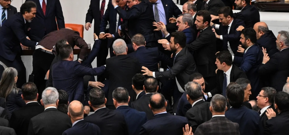 टर्कीको संसद्मा बुधबार ठुलो झडप भएको छ। सत्तारुढ दल र विपक्षी सांसदहरूबिच धकेलाधकेल र मुक्का हानाहान भएको भिडियो बाहिर आएको छ।