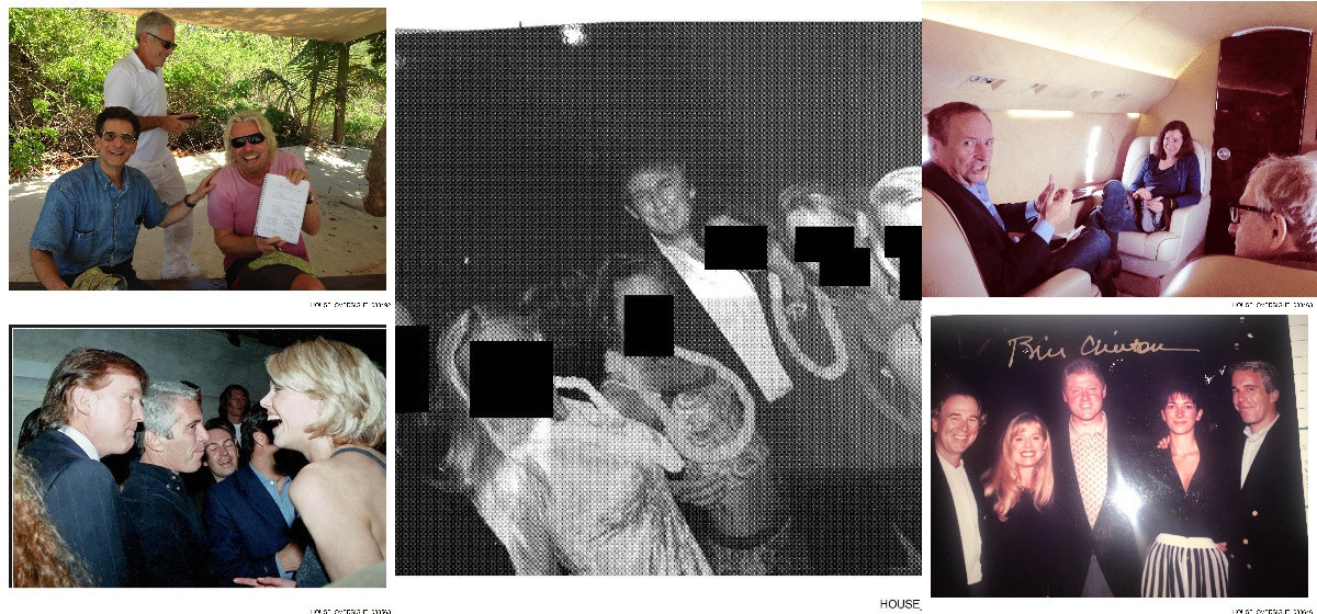 क्लिन्टन एपस्टाइन र घिसलेन म्याक्सवेलसँगै पोज दिइरहेको देखिएको छ, जसमा क्लिन्टनको हस्ताक्षर पनि छ। यी तस्बिरमा कुनै गैरकानुनी गतिविधि देखिँदैन र मिति वा स्थान स्पष्ट छैन।