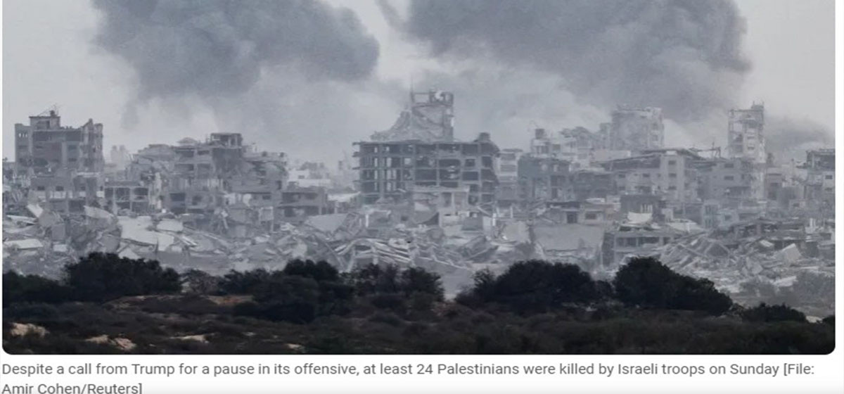इजरायल र हमास मिस्रमा अप्रत्यक्ष वार्ताका लागि तयारी गर्दै छन्। डोनाल्ड ट्रम्पको २० बुँदे युद्धविराम योजनामाथि आधारित गाजा युद्ध अन्त्य गर्ने सम्भावित सम्झौताबारे छलफल हुने अपेक्षा गरिएको छ।यसका बाबजुद पनि इजरायली सेनाले आफ्नो बमबारी अभियान जारी राखेको छ। अल–जजिरा अरबीलाई प्राप्त स्रोतहरूका अनुसार आइतबार मात्र इजरायली सेनाको आक्रमणमा कम्तीमा २४ प्यालेस्टिनी मारिएका छन्। पीडितमध्ये चार जना शरणार्थी थिए, जसलाई रफाहको उत्तरतिरको राहत वितरण केन्द्र नजिकै गोली हानिएको थियो, नासर मेडिकल कम्प्लेक्सले जनाएको छ।