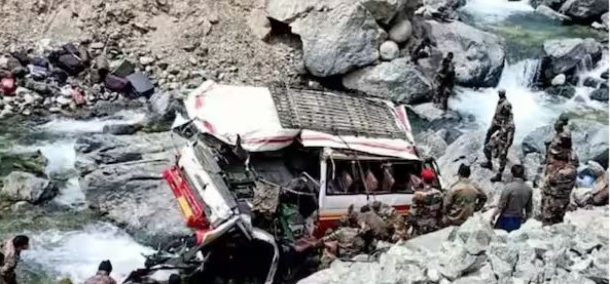दुर्घटना भादरवाह–चम्बा अन्तरराष्ट्रिय सडकअन्तर्गत खन्नी टुप्पो क्षेत्रमा दुर्घटना हुँदा गाडी सडकबाट तल खसेको छ । करिब ९ हजार फिट उचाइको सडकखण्डमा सेनाको बुलेटप्रुफ गाडीका चालकले नियन्त्रण गुमाउँदा दुर्घटनामा परेको हो ।