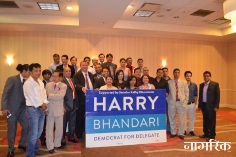 बढ्दो नेपाली मुलको संख्यासंगै अमेरिकी मुलधारको राजनीतिमा पनि प्रवेश हुनेको संख्या बढ्न थालेको छ। स्थानीय राजनीतिमा जसरी नेपाली मुलका व्यक्तिहरु प्रवेश पाएका छन त्यो भन्दा माथिल्लो स्तरको अर्थात राज्यसभाको लागि एक जना नेपाली मुलका ह्यारी भण्डारी प्रतिनिधित्व गर्ने अन्तिम कसरतमा जुटेका छन्।