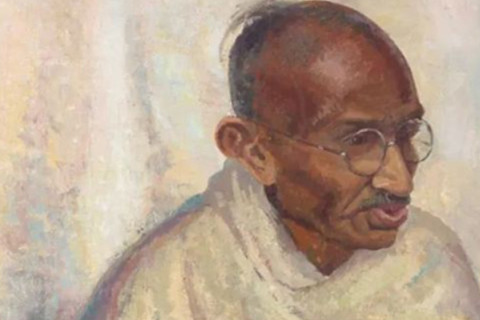 बोनह्याम्सका अनुसार, विशेष रुपमा बस्न लगाएर बनाइएको गान्धीको यो सम्भवतः एक मात्र तेलचित्र हो।