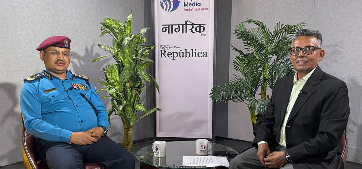नेपाल प्रहरीका महानिरीक्षक दीपक थापा झन्डै ८० हजार जनशक्तिका हर्ताकर्ता हुन्। नेपाली समाजमा अपराध कर्म पनि उत्तिकै झाँगिएको छ। परिवर्तित सन्दर्भमा प्रहरीको काम फेरिएको छ। जनसंख्याका आधारमा प्रहरी जनशक्ति कम भए पनि अपेक्षा गरेअनुसारका सुरक्षा सामग्रीको सहयोग कम हुँदा नागरिक सरकारको अनुहारका रूपमा सडकदेखि सिंहदरबारसम्म सेवा पुर्याइरहेको छ। महानिरीक्षक थापाले आफ्नो पाँचमहिने अनुभव ‘नागरिक फ्रन्टलाइन’ को बुधबारको अंकमा प्रधानसम्पादक गुणराज लुइँटेलसँग साझा गरेका छन्। प्रस्तुत छ - महानिरीक्षक थापासँगको अन्तर्वार्ताको सम्पादित अंश।