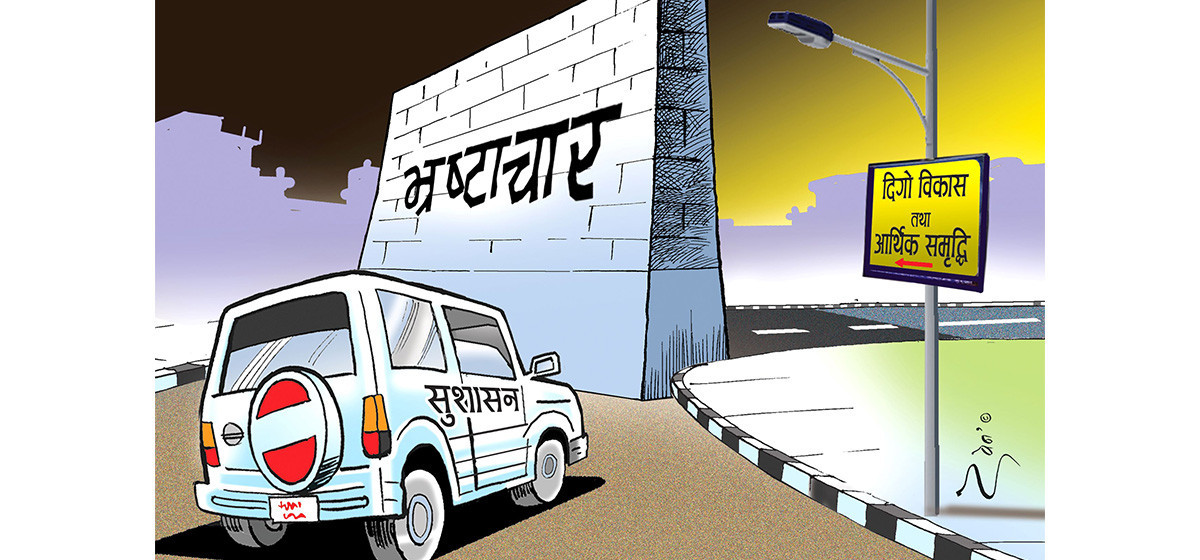 भ्रष्टाचार अन्त्यका निम्ति नीतिगत, संस्थागत, संरचनागत र कार्यगत व्यवस्था मिलाएर समृद्धिको बाधकको पर्खाल भएर उभिएको भ्रष्टाचारको जालो तोड्ने प्रमुख दायित्व त सरकारको हो। सुशासन कायम गर्ने सन्दर्भमा सरकार जति कठोर बन्नुपर्ने हो, त्यो त छाडौँ, नीतिगत निर्णय का नाममा सरकारहरू स्वयम् भ्रष्टाचारलाई प्रश्रय दिन उद्यत रहँदा सुशासनकै विषयलाई लिएर आन्दोलनको आँधीबेहरी निर्माण गर्नुपर्ने परिस्थिति सम्मुख आज मुलुक उभिएको छ।