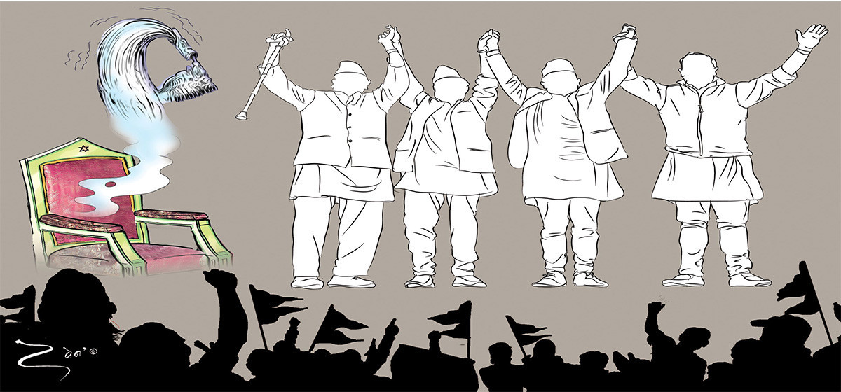 पञ्चायती व्यवस्था छँदादेखि व्यक्तिवादी बनेका पूर्वपञ्च र उनीहरूलाई नायक मान्नेले पनि ‘म’ मात्रै भन्न जानेका छन्, ‘हामी’ भन्न जानेकै छैनन्। राजतन्त्रको आवाज जताततै सुनिन्छ र यो बल अहिलेसम्मकै प्रमुख प्रतिपक्ष हो। सन् १९१७ मा रसियन बोल्सेभिक (बहुमत) शासन सुरु भएपछि जसरी अल्पमत (मेन्सेभिक) एकजुट भए, त्यस्तो इतिहासबाट पाठ सिकेनन्, यहाँका मिन्सेभिकले।
