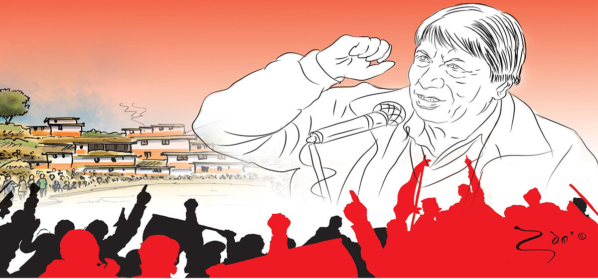 विकासको मूल फुटेर बगेका पहाडहरू। वनपाखा र खेत उजाडिएर प्लटिरूका घडेरी बनेका बाँझा जमिनहरू। गाउँ काकाले पनि मस्त क्रिमपाउडर दलेर खैरे भएझैँ देशको मुहार पनि फेरिएछ। कालो अनुहार गोरो भएछ। कुरीति बेथितिविरुद्ध चिच्याइरहने ती सच्चा कम्युनिस्टलाई जिस्क्याइरहेझैँ लाग्छ। तीनै संस्कृतिका पारखीहरूले, मेहन्दी र हल्दी संगीतमा नाच्दै गरेका केटाकेटीहरूले ती रत्यौली खेलिरहेका बूढीहरूलाई धपाए जस्तो लाग्छ। गिज्याइरहेझैँ लाग्छ।
