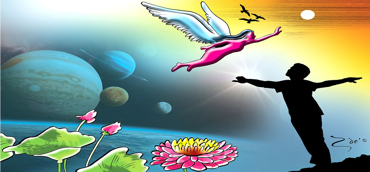 खुला आकाश, स्वतन्त्र विचरण, त्यसको मज्जा आफ्नै। स्वतन्त्रताको उपभोग पनि कति मादक। मानिस स्वतन्त्रताको भोको, अनि दुव्र्यसनी। आफूलाई जे मन लाग्यो त्यो गर्यो। जता जान मन लाग्यो, उतै लाग्यो। जे मन पर्यो, त्यही खायो। जे मन लाग्यो उही लगायो। आफ्नै धूनमा आफ्नै सुरमा, मनलाग्दो। मन नै त हो यो देहको सञ्चालक पनि। मन मनुष्यको दिग्दर्शक। मार्गनिर्देशक पनि। मनको स्वतन्त्रता सुखानुभूति, आत्मसन्तुष्टि। मनको सुख मानिसको सुख। अनि मनको दुःख मानिसकै दुःख। मन स्वच्छ, शुद्ध र विवेकपूर्ण भए मानिस पनि विवेकशील बन्छ।
