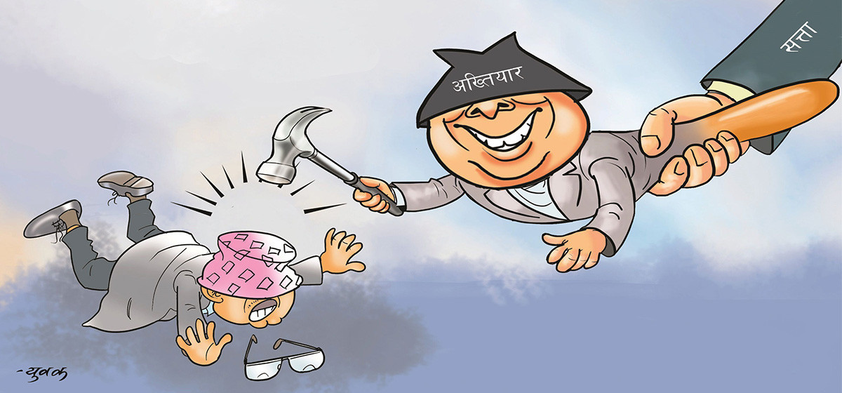 यस्तो मुद्दा चल्नुपर्ने मानिस माधव नेपाल मात्र होइनन्, सत्तामा सहभागी भएका प्रत्येक दलका उच्चपदस्थ व्यक्तिमाथि छानबिन गरी मुद्दा दायर गर्नुपर्ने माग बढिरहेको छ। यस्तो अवस्थामा सत्ता र शक्तिको दुरूपयोग गरी आफ्ना विरोधीलाई सिध्याउने खेलमा लागेको सत्ता राजनीति सबैले बुझेका छन्।