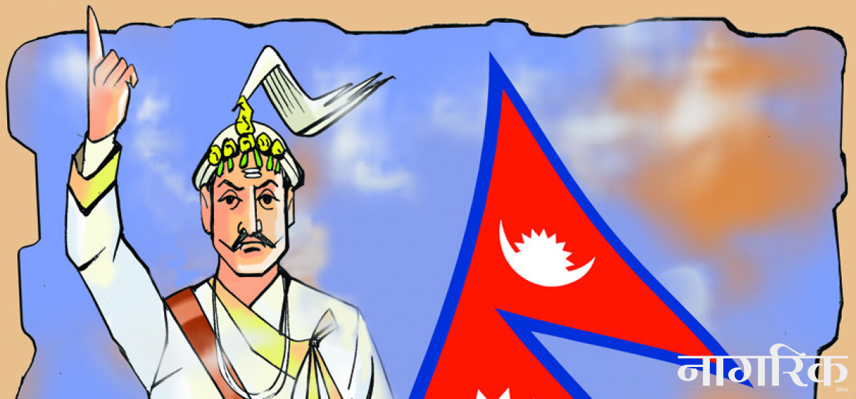 राजदरबारका गुरुहरू बालक युवराज पृथ्वीनारायण शाहलाई देवीदेवताका कथा सुनाउँथे। इमानदार, लोकप्रिय, साहसी र वीरले ठूल्ठूला सत्कर्म गर्न सक्छन् भनेर प्रेरक उपदेश दिन्थे। पशुपतिनाथको दर्शन गर्न आउँदा कान्तिपुर, ललितपुर र भादगाउँ (भक्तपुर) घुमेका एकजना गुरुले पृथ्वीनारायणलाई सुनाए– “खड्ग (तरबार) आकारको छ, काठमाडौँ सहर। बीँड बसन्तपुरतिर र चुच्चो ठमेलतिर भए जस्तो देखिन्छ। गुणकामदेव राजाले बसाएको काठमाडौँ सहर साँच्चै मनोरम छ। देवी–देवताका हजारौँ मन्दिर छन् त्यहाँ। बौद्ध धर्म मान्नेका गुम्बा र विहारहरू छन्। त्यो प्राचीन सहर हो।” त्यो शब्दचित्रले बालकको हृदयमा गहिरो प्रभाव प¥यो। गोरखाको टाकुरामा रहेको सानो दरबारमा हुर्केका पृथ्वीनारायण शाहले अठोट गरे, लमजुङ, तनहुँ, नुवाकोटलगायतका राज्यलाई जित्दै एक दिन अवश्य म काठमाडौँ पुग्छु। राजगद्दी सम्हालेपछि उनी दरबारमा रमाइलो गरेर बसेनन्। जंगल, पहाड, भीर नदी, मैदान र फाँटहरू पार गर्दै अघि बढे सैनिकहरू लिएर। पशुपतिनाथ, गुह्यश्वरी र गोरखाकालीको भजन गाउँदै वीर सैनिकहरू अघि बढे। कोदो, फापर, आलु, तरुल, भटमास र मकै जहाँ जे पाइन्छ, त्यही खाएर युद्धमा होमिए, हाम्रा पुर्खा। त्यो इतिहास सम्झिँदा आज हामी भावुक बन्छौँ, रोमाञ्चित हुन्छौँ र उनीहरूप्रति नतमस्तक हुँदै नमन गर्छौँ।