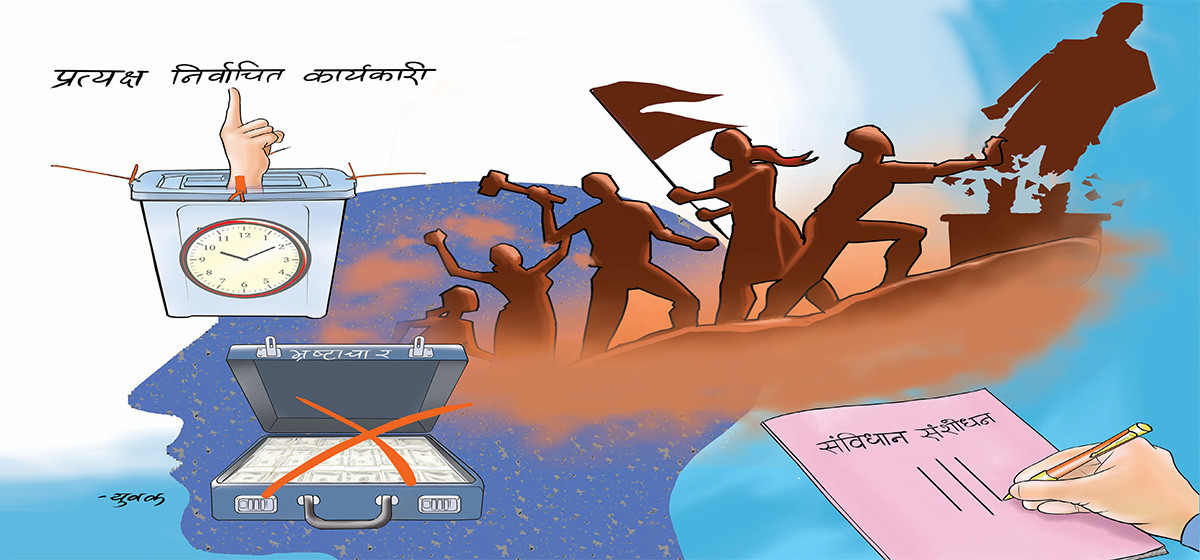 वर्तमान संविधानको अग्रगामी संशोधनका लागि सबै दल दलीय स्वार्थभन्दा माथि उठ्न जरुरी छ। विगतमा भएका त्रुटिलाई सच्याएर आम जनतामा विश्वास जगाउँदै देशप्रतिको माया जगाउन जरुरी छ। नेपाल रहे हामी नेपाली रहन्छौं भन्ने देशप्रेमको सद्भाव र भातृत्व नेपालीबिच जगाउन जरुरी छ। यो विश्वासको बिचबाट आफ्नो कार्यकारी नेतृत्व प्रत्यक्ष रूपमा चुन्ने प्रणाली संविधानमा समावेश गर्न जरुरी छ। यो प्रणालीलाई प्रभावकारी बनाउन संविधानमा आवश्यक संशोधनबाहेक नेपालको अग्रगामी निकासको विकल्प छैन।