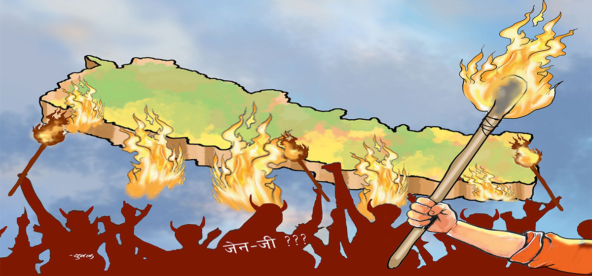 जनताको आशा र ऊर्जा बन्नुपर्ने पुस्ता आन्दोलनको आवरणमा विध्वंसको औजार बनेर उभिँदा सिहदरबार, सर्वोच्च अदालत, अख्तियार दुरुपयोग अनुसन्धान आयोग, संसद् भवनदेखि देशभरका सरकारी निकाय, उद्योग–व्यवसाय, कलकारखाना र निजी घरसम्म जलेर खरानी भए। यो आन्दोलनले सम्पत्तिको क्षति मात्र गरेन, जनमानसमा आतंकको बिउ रोप्यो, जेनजीकै भविष्यलाई अनिश्चितताको अन्धकारतर्फ धकेल्यो। त्यति मात्र होइन, कोरोनाको कहरबाट थिचिएको अर्थतन्त्र बामे सरिरहेकै अवस्थामा मुलुकलाई दशकौंवर्षपछाडि धकेल्ने काम भएको छ।