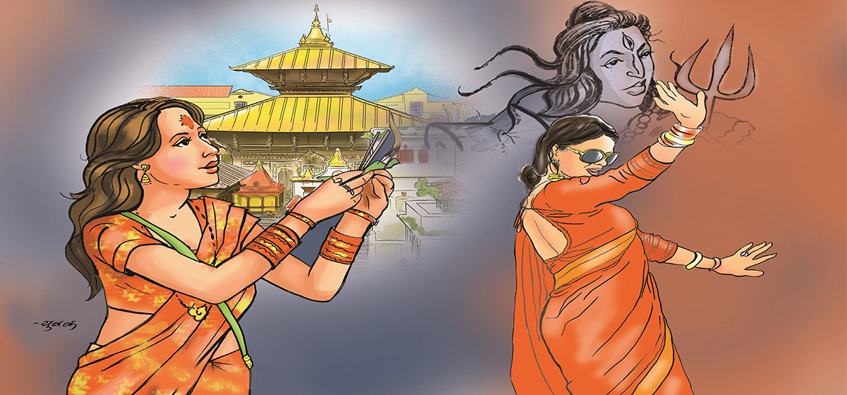 भगवान् शिव ब्रह्मा, विष्णु र महेश्वर गरी हिन्दु त्रिमूर्तिमध्येका एक हुन्, जसलाई सिर्जना र विनाश दुवैसँग जोडिन्छ। उनलाई प्रेम र समर्पणको प्रतीक पनि मानिन्छ। योनी र लिंगको एकताको कथा शिव–पार्वतीको प्रेम र त्यागको प्रतीक हो। मेरो लागि शिवको सबैभन्दा ठूलो सन्देश भनेको प्रकृतिलाई माया र संरक्षण गर्नु हो। उनको रूप –पवित्र गंगा नदी उनको जटाबाट बगिरहेको, घाँटीमा सर्प लपेटिएको, शरीरमा बाघको छालाले ढाकेको) सम्पूर्ण रूपमा प्राकृतिक तŒवहरूसँग जोडिएको छ।