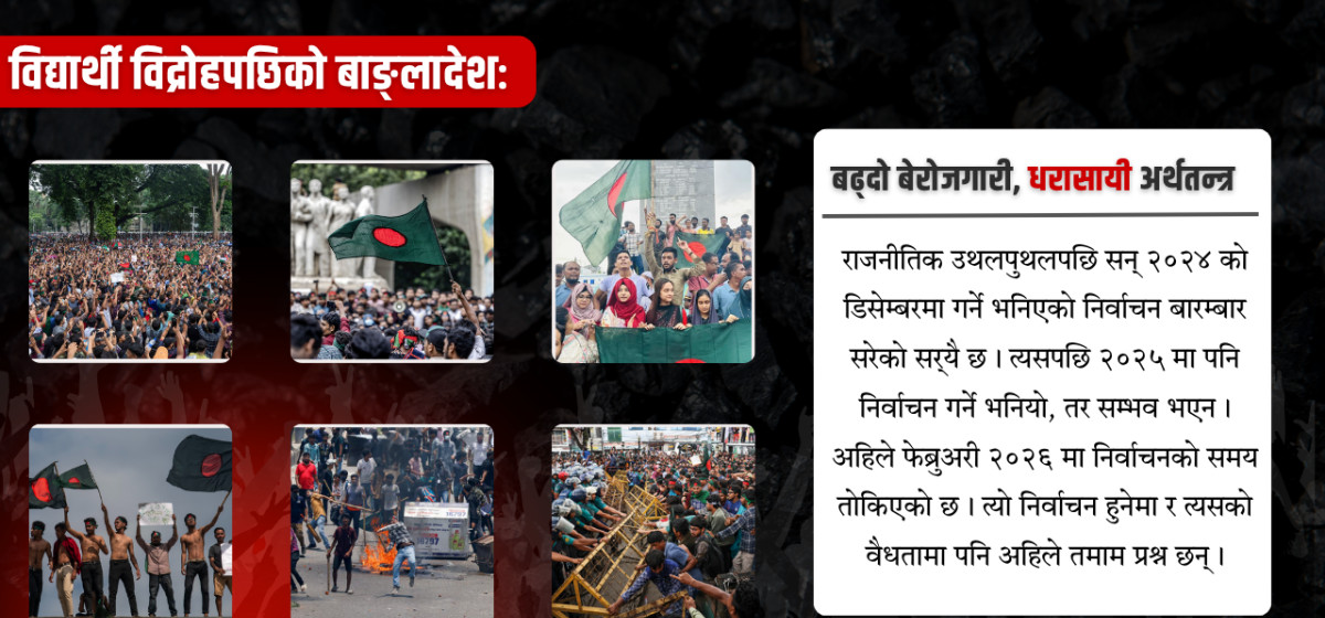 बंगलादेश अहिले इतिहासको एक संवेदनशील मोडमा उभिएको छ। एकातिर विद्यार्थी क्रान्तिले ल्याएको परिवर्तन र नयाँ भविष्यको आशा छ भने अर्कोतिर राजनीतिक प्रतिशोध, संस्थागत कमजोरी र आर्थिक संकटको गहिरो खाडल छ।