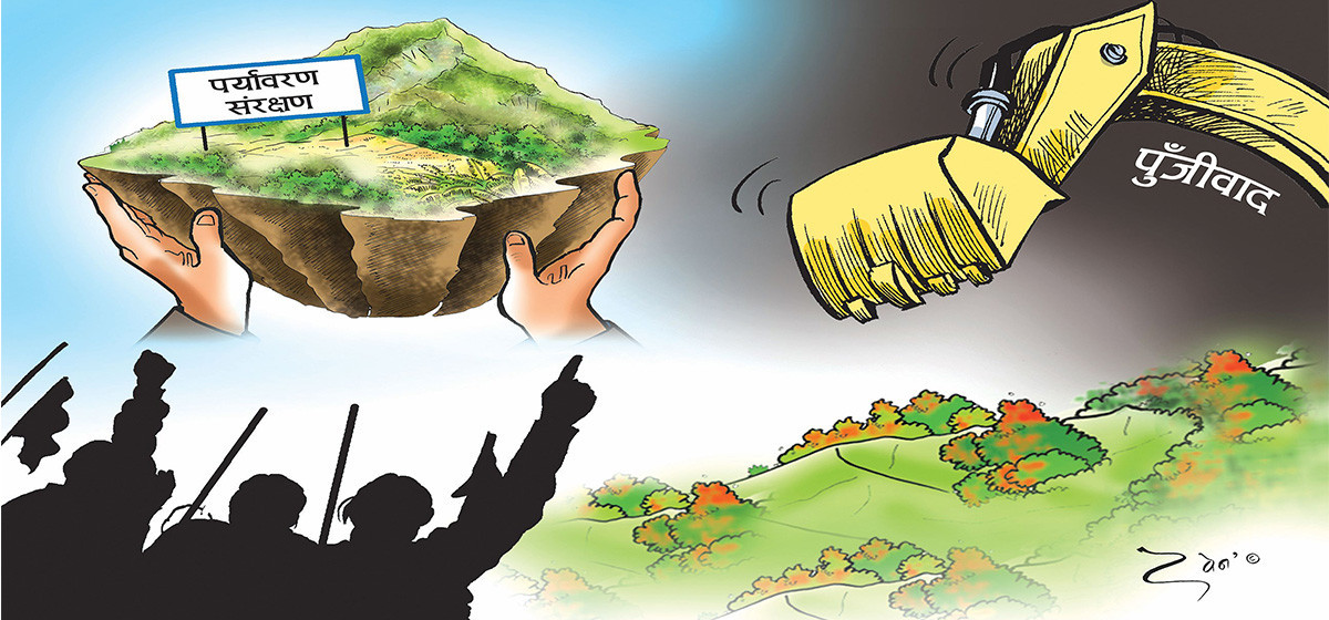 बाटो निर्माण तथा खानीहरू उत्खनन खातिर भएका जंगल फडानी तथा पहाडको बेर्पाह कटान अनि नदीका ढुंगा बालुवाहरूको दोहन वातावरणीय विनाशका मुख्य कारणहरू मध्येका हुन्। जसले जलवायु परिवर्तनलाई अझ तीव्रता दिइरहेको छ। वैज्ञानिक सोचविचार र मूल्यांकन बिना बनाइएका परियोजनाहरू वातावरणीय सन्तुलन खलबल्याउने कारक मानिन्छन्। यद्यपि राज्यको विवेकयुक्त हस्तक्षेप (नियमन तथा नियन्त्रण) र चुस्त कर प्रणालीले मात्रै ठुलाठुला कम्पनीको मनोमानी रोक्न सक्छ।