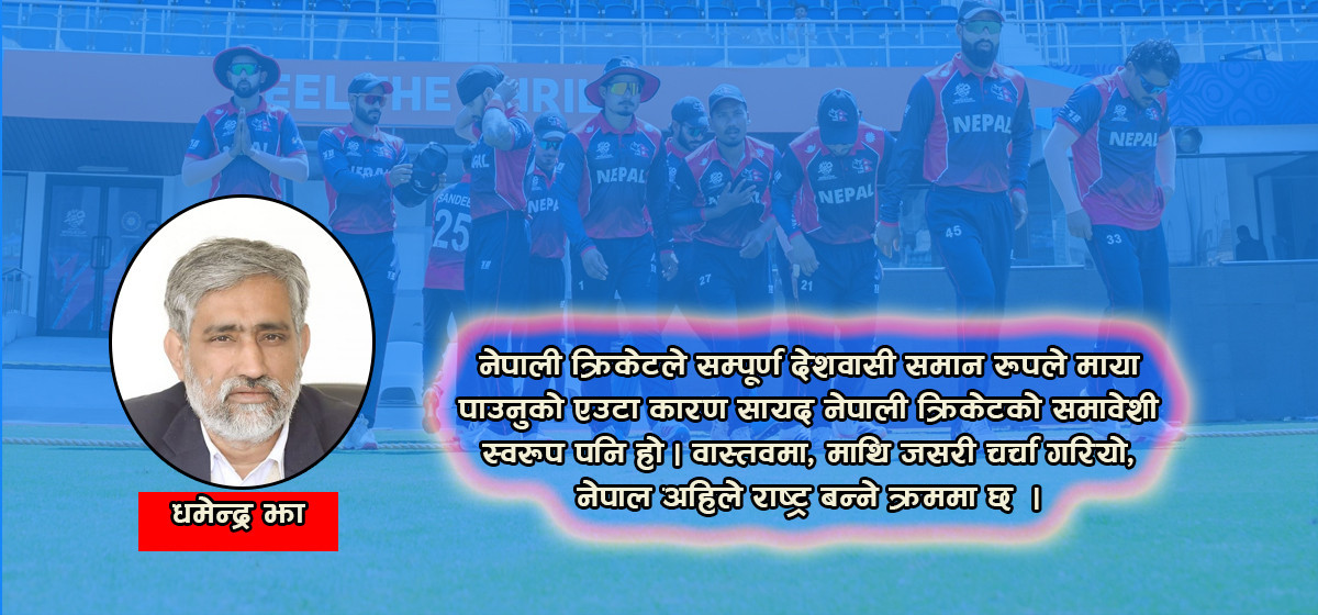 नेपाली क्रिकेटले सम्पूर्ण देशवासी समान रूपले माया पाउनुको एउटा कारण सायद नेपाली क्रिकेटको समावेशी स्वरूप पनि हो । वास्तवमा, माथि जसरी चर्चा गरियो, नेपाल अहिले राष्ट्र बन्ने क्रममा छ । यस सन्दर्भमा यहाँ हामीले थुप्रै तत्त्वलाई राष्ट्र जोड्ने तत्त्वका रूपमा विकसित गर्न सक्नुपर्छ । राज्यको भूमिका यहाँनिर महत्त्वपूर्ण हुन्छ । क्रिकेट उदाहरण हो, यसरी नै राज्यका अन्य पक्ष पनि पूर्ण समावेशी हुन सके देश निर्माणको प्रक्रिया सकारात्मक रूपमा प्रभावित हुन सक्ने सम्भावनालाई अस्वीकार गर्न सकिँदैन ।