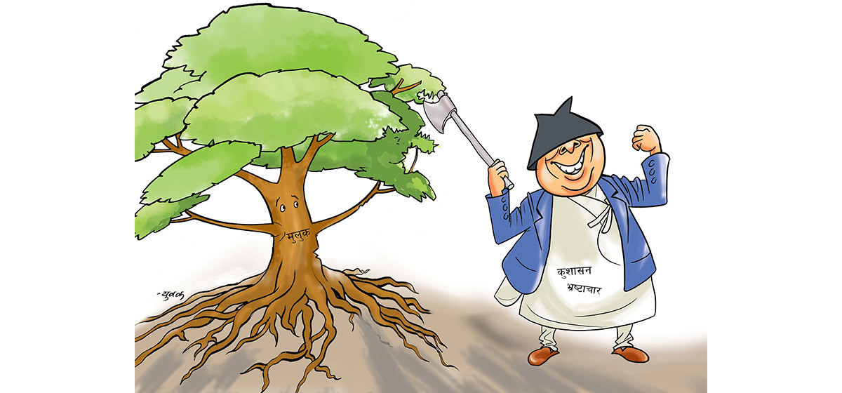 ट्रान्सपरेन्सी इन्टरनेसनलको २०२४ को करप्सन पर्सेप्सन्स इन्डेक्समा नेपाल १८० देशमध्ये १०७ औं स्थानमा छ र जम्मा ३४ अंक मात्र पाएको छ। सिङ्गापुर ८४, भुटान ७२ र रुवान्डा पनि ५० माथि छ। विश्व बैंकको प्रक्षेपणअनुसार नेपालको जिडिपी वृद्धिदर सन् २०२६ मा २.१ प्रतिशतमा झर्न सक्ने भन्ने छ। यस्तो संवेदनशील अवस्थामा भ्रष्टाचार नियन्त्रण र सुशासनका कदमहरू समयमै चालिएनन् भने विकास थप पछाडि धकेलिन्छ। यसको अर्थ हुन्छ, अरू विसंगति, विकृति र अव्यवस्थाको जञ्जालले नेपाललाई ग्रस्त बनाएर कुरूप तुल्याउनु।