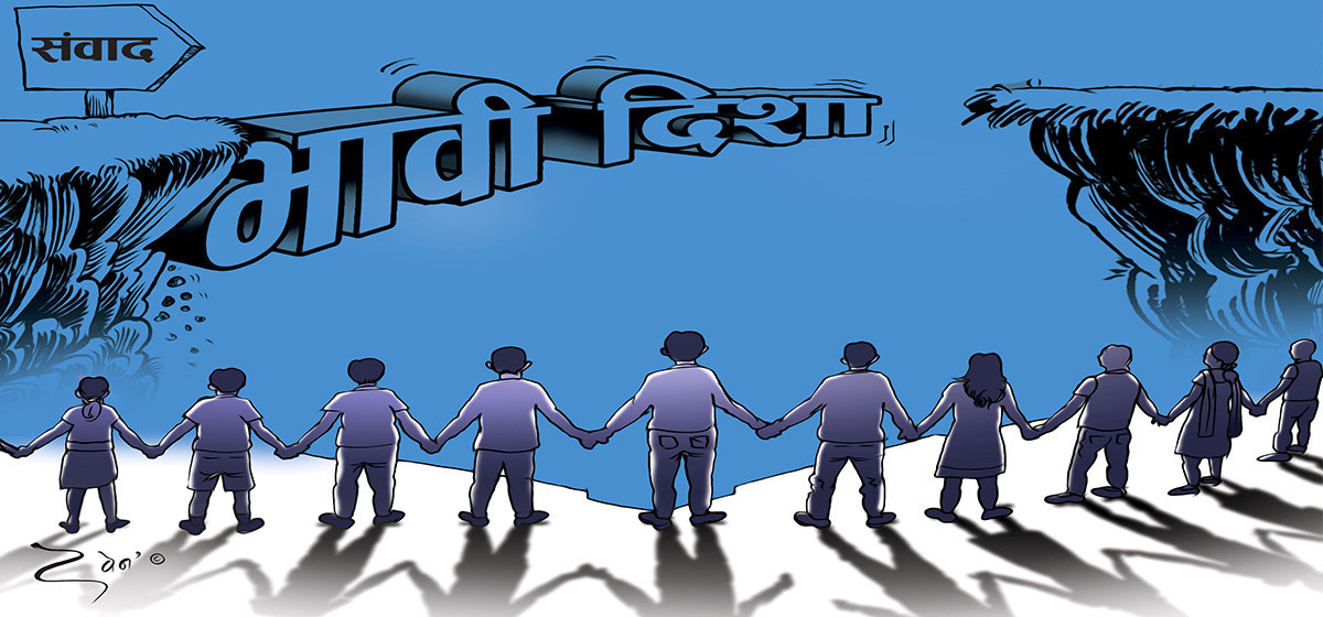 नेपालको वर्तमान राजनीतिक परिवेशमा दलबिच कुनै हदसम्म सहकार्य र छलफलका संकेत देखिए पनि यो संवाद आंशिक, खण्डित र सीमित दायरामा मात्र भइरहेको छ। व्यापक राष्ट्रिय मुद्दामा सबै दललाई एउटै टेबलमा ल्याएर साझा दृष्टिकोण निर्माण गर्ने अभ्यास अझै संस्थागत हुन सकेको छैन। बरु, अहिले पनि नेतृत्वले एकअर्कालाई दोषारोपण गर्ने, विगतका कमजोरी उछाल्ने, गठबन्धन–तोडफोडको राजनीति गर्ने र तत्कालीन फाइदाअनुसार मात्र समताको भाषा बोल्ने प्रवृत्ति हावी छ। यस्तो अविश्वासले नीतिनिर्माण मात्र कमजोर बनाउँदैन, सरकारले सुरु गरेका कार्यक्रमलाई समेत अस्थिर बनाउँछ।