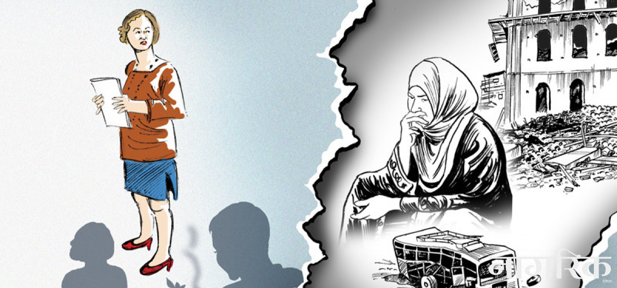 मैले त्यतिबेर चितवनको टाँडीमा बसभित्र जिउँदै जलाइएकी बालीका काजोल खातुनलाई सम्भि्कएँ। अर्को त्यस्तै बीभत्स दृश्य देखाउँदै भनिथिन्– 'हेर यी मेरा पति हुन्। आतंककारीहरूले नै १० वर्षअघि घरमै आएर जिउँदै शरीरको छाला काडेर हत्या गरिएका।' अनि अर्को अलि वृद्धको दुवै हात आधा गिँडिएको चित्र देखाउँदै भनिथिन्– 'हेर यी मेरा पिता हुन्। उग्रवादीहरूले हातखुट्टा छिमलेर मार्न लाग्दा बहादुरीसाथ प्रतिकार गरेर बँचेका। पछि उनीहरूले घरमै आएर आक्रमण गर्दा बमले खाएका दुवै हात काट्नुपर्यो।' उनको परिवारको वीभत्स हत्या र अपांगताको दृश्य देख्तै म आफ्नै देशका कुनाकन्दरातिर हराउँदै गएछु। युद्धकालमा हत्या गरिएका थुप्रै सीडीओ, अनुसन्धान अधिकृत र प्रहरीका अंगभंग शरीर आँखाअगाडि घुम्न थाले। दिमाग रन्थनिँदै गयो। मनोदशा त्यतिकै खलबलिएझैँ भयो। 'पहिलो सांघातिक घटनापछि अर्को सुरक्षित ठाउँमा सर्नुपर्थ्यो नि त!' मैले जारालाई भनेथेँ।