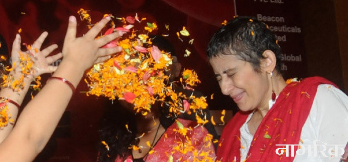 धेरैले अनुमान गरेभन्दा फरक 'लुक्स'मा उनी झुल्किइन्। क्यान्सरको उपचारले थलिएको रुग्ण अनुहार होइन। ऊर्जाले भरिएको, क्यान्सरलाई जितेको 'विजेता मुस्कान' लिएर कार्यक्रममा प्रवेश गर्दा फूलको वर्षा गरेर आयोजकले उनको स्वागत गरे।अमेरिकाको न्युयोर्कमा क्यान्सर उपचार गरेर भारतको मुम्बईमा आराम गरिरहेकी उनी क्यान्सर विशेषज्ञ चिकित्सकको अन्तर्राष्ट्रिय सम्मेलनमा भाग लिन काठमाडौं आएकी हुन्।