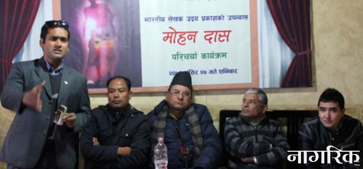 उनले यो कृतिले नेपाली परिवेशमा समेत सुहाउँदो पहिचानको मुद्दा उठाएको बताए। 'भारतीय परिवेशको जीवन्त चित्रण गरिएको कृतिले सीमान्तकृत वर्गको भावना समेटेको छ,' श्रेष्ठले भने।फिल्म समीक्षक विकास बस्नेतले 'मोहन दास'माथि बनेको फिल्मको समीक्षा गरे। 'कृति जति उत्कृष्ट छ, फिल्म त्यति उत्कृष्ट बन्न सकेको छैन,' उनले भने। सोसाइटीका अध्यक्ष गनेस पौडेलले पछिल्लो समयका आख्यानहरू फिल्मका लागि समेत उपयुक्त हुने किसिमले लेखिएको बताए। 'मोहन दास'लाई लेखक यज्ञशले नेपालीमा अनुवाद गरेका छन्।