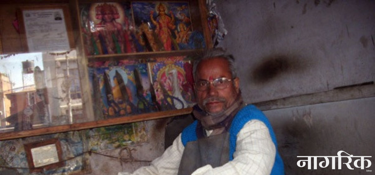 उनी हुन्, कैँचीमिस्त्री रौतहट गौरका ५५ वर्षे रामचन्द्र ठाकुर। उनको कैँचीको धार लगाउँदा सानबाट फैलिने झिल्काजस्तै कहाँ–कहाँ फैलिएनन् उमेरमा उनी पनि। 'पाखुरामा बल हुञ्जेल काँधमा मेसिन बोकेर शहरका प्रत्येक गल्ली र टोल पुगेको छु,' उनी भन्दै थिए। सान बोक्ने पाखुरा गल्दै गएपछि यहीँ आएर थन्किएका छन्, 'ज्यानले साथ नदिएपछि मेसिन बोकेर कुद्न सकिएन। पसलै थापेर बस्नुपर्योन।'