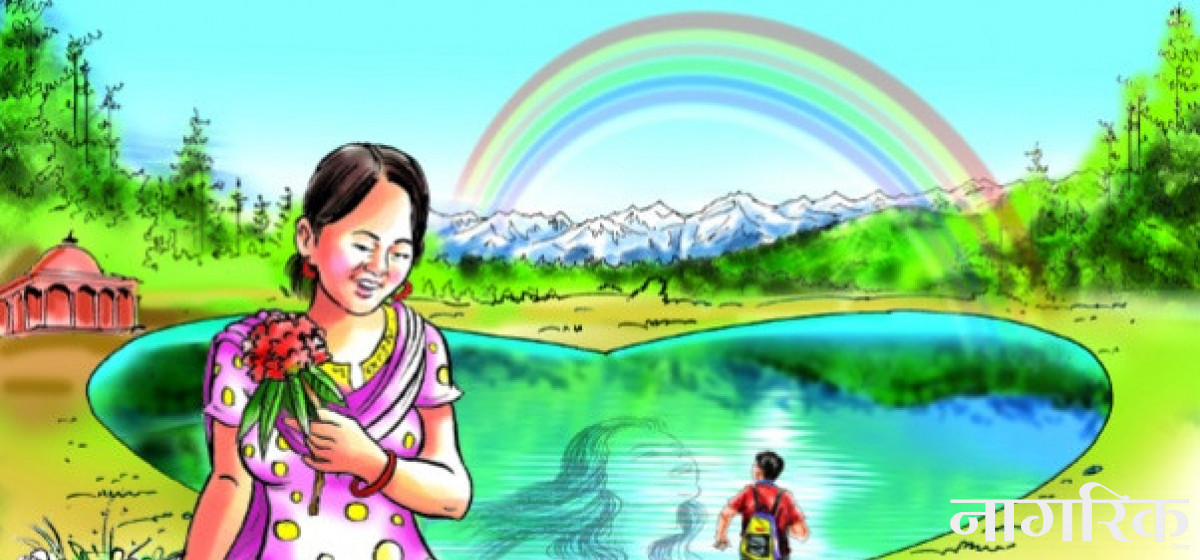 ‘मेरो नाम रामा हो। धेरैअघि म यहीँ परको शिव मन्दिरमा फूल बेचेर बस्थेँ। मैले मायातालमा पहिलोपटक आफ्नो रूप हेरेकी थिएँ, आजभन्दा ४० वर्षअघि। त्यति बेला मैले मायातालमा आफ्नो छाया यही मूर्तिजस्तै देखेकी थिएँ। जवानीमा म यो मूर्तिजस्तै राम्री थिएँ। अहो, मजस्तै मूर्ति कसले बनायो होला?'