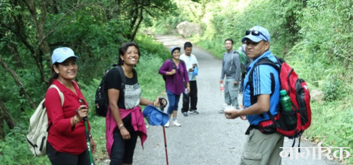 म नयाँ उत्साह र जोसकासाथ निरोगधाम प्रस्थान गरेँ। जेठ २४ गते हामी हाइकिङमा निस्केका थियौं। प्रकृतिप्रेमी समूहले विगत १२ वर्षदेखि पदयात्रा गराउँदै आएको छ। यसपालिको हाइकिङ भुइँचालोको त्रासलाई विगत बनाउँदै जीवन सामान्यतिर अघि बढाउने उद्देश्यले गरिएको थियो।