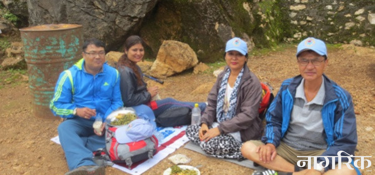 समूहले विगत १२ बर्षदेखि काठमाडौ वरपरका डाँडामा स्वास्थ्य पर्यटन प्रबर्धन गर्दै आएको छ। फुलचोकीमा सय जना पुगेका थियौं। भुइँचालो गएको दुई महिना वितिसक्दा पनि जनमानसमा डर कायमै थियो। सातदोबाटोबाट गोदावरी पुगुञ्जेल बाटो छेउछाउमा घरका भग्नावशेष देख्दा मन निमोठियो। हामी पक्कै उठ्नेछौं यो दुःखबाट।