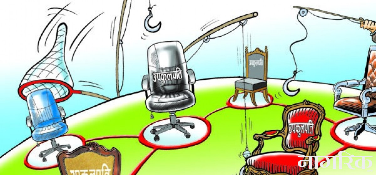 राजनीतिक दबाब थेग्न नसकेरै कुलपतिले बनाएका छनोट समितिले नाम सिफारिस गर्न सकेका छैनन्। यही मौकामा प्राध्यापक संघ/संगठनहरु आफ्ना दलका तर्फबाट उम्मेदवारको सूची बोकेर कुदिरहेका छन्। सम्भावित उपकुलपतिहरुको सूची शीर्ष नेताका खल्तीमा पुगिसकेको छ।