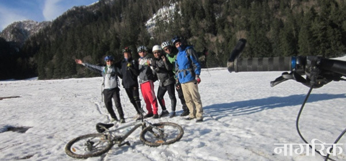 पाँचौं दिन बिहान ६ः१५ बजेदेखि भुलभुलेबाट साइकल कुदायौं। केही बेरमै चारैतिर हिउँ नै हिउँ भएको ४ हजार फिटमाथि सेनाको चेकपोस्ट पुग्यौं। बाटो छाडेर हिउँमा साइकल कुदाउन थाल्यौं। जंगलबीचमा राष्ट्रिय चरा डाँफे हेर्दै साइकल कुदायौं। हिउँले जमिन गलेकाले होला ठूलो पहिरोले बन्द बाटोमा साइकल काँधमा बोकेर पार गर्यौंष।