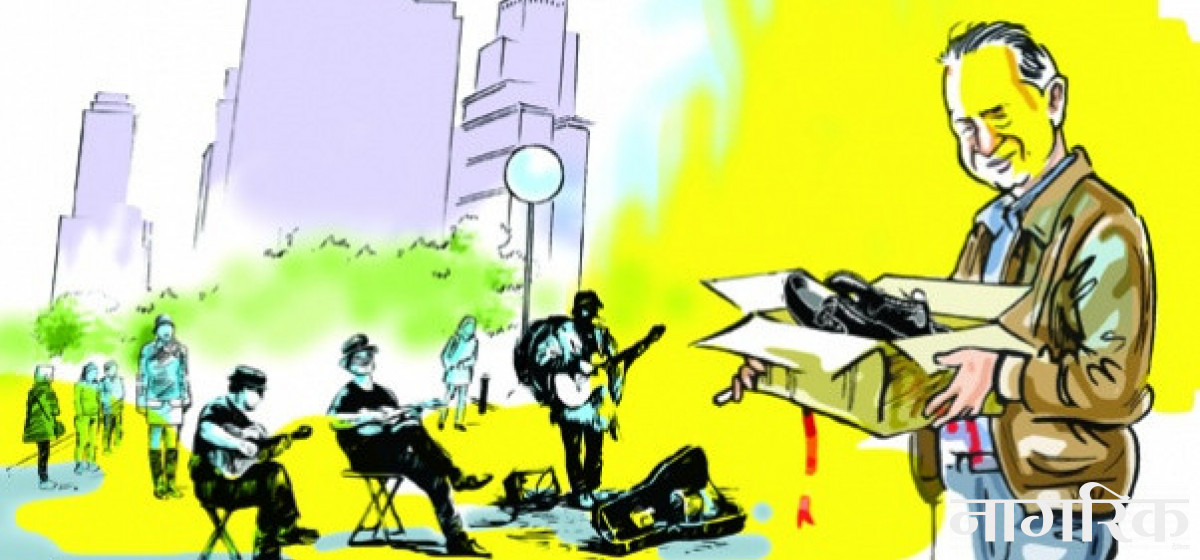 मैले अमेरिका र जर्मनीजस्ता ठाउँहरूमा पैसा आर्जन गर्ने रमाइलो तरिका देखेँ । ती देशका सडकमा मान्छेहरू गितार वा मेन्डोलिन वा की बोर्डमात्र वा दुई–तीन वटा हल्का बाजाका साथ सानो साउन्ड सिस्टम लिएर गीत गाउँछन् । पैसा कमाउँछन् । मागिखानेहरूसँग त इजाजत पत्र पनि पो हुन्छ रे । हिजोआज काठमाडौंको सडकहरूमा पनि अपांगता भएकाहरू विशेषगरी दृष्टिविहीनहरू त्यसै गरी हातमुख जोर्ने काममा लागेको पाइन्छ । पहिलोचोटि अमेरिकामा यस्तो देख्दा के होला भन्ठानेको त पछि मात्र थाहा भयो— ती त नेपालीको भाषामा 'मागिखानेहरू' पो रहेछन् !