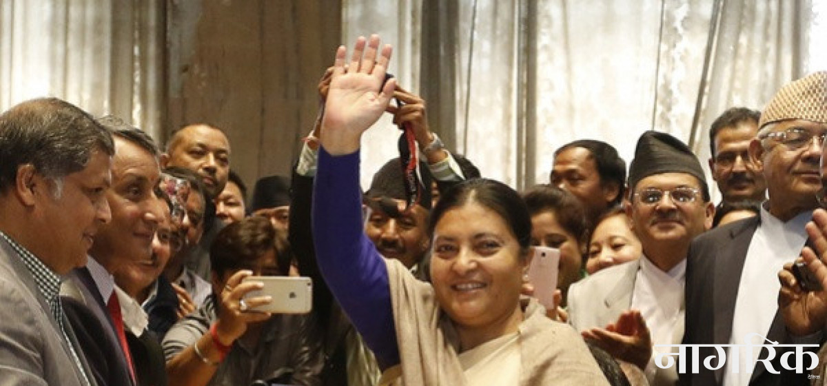 भण्डारीको उम्मेदवारीमा एकीकृत नेकपा माओवादीका अध्यक्ष पुष्पकमल दाहाल प्रस्तावक र राप्रपा नेपालका अध्यक्ष कमल थापासहित दर्जन दलको समर्थन छ। भण्डारीको पक्षमा मधेसी जनधिकार फोरम नेपाल लोकतान्त्रिक, राष्ट्रिय प्रजातन्त्र पार्टी, नेकपा माले, राष्ट्रिय जनमोर्चा, नेकपा संयुक्त, नेपाल परिवार दल, जनमुक्ति पार्टी लोकतान्त्रिक, बहुजन समता पार्टी, समाजवादी जनता पार्टी, नेपा पार्टी, मधेस समता पार्टीको समर्थन रहेको छ।