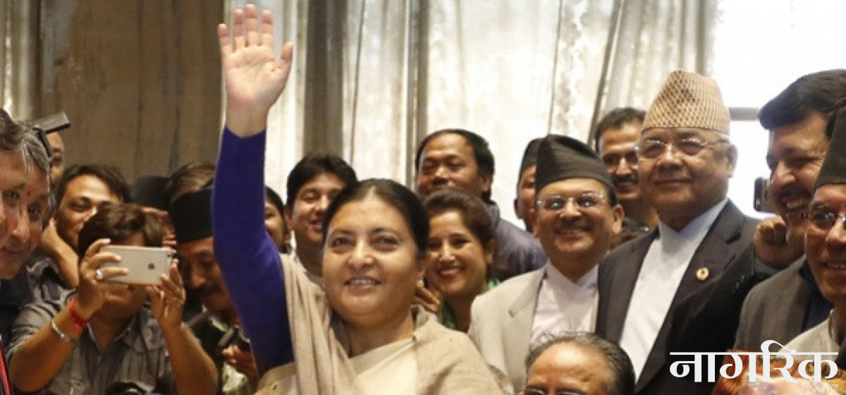 काठमाडौं– गणतन्त्र नेपालको दोस्रो राष्ट्रपतिमा एमाले उम्मेदवार विद्यादेवी भण्डारी निर्वाचित भएकी छिन्। अाधुनिक नेपालकाे इतिहासमा उनी पहिलाे महिला राष्ट्रपति हुन्। बुधबार व्यवस्थापिका संसदमा भएको राष्ट्रपति निर्वाचनमा भण्डारीले कांग्रेस उम्मेदवार कुलबहादुर गुरुङलाई पराजित गर्दै पहिलो महिला राष्ट्रपति निर्वाचित भएकी हुन्। कुल मतदाता ५ सय ९७ मध्ये ५ सय ४९ मत खसेकाे थियाे भने ४७ जना सांसद अनुपस्थित थिए भने एक जना निलम्बित छन्।भण्डारीको पक्षमा ३ सय २७ र गुरूङकाे पक्षमा २ स १४ मत परेकाे छ। ८ मत बदर भएकाे छ।