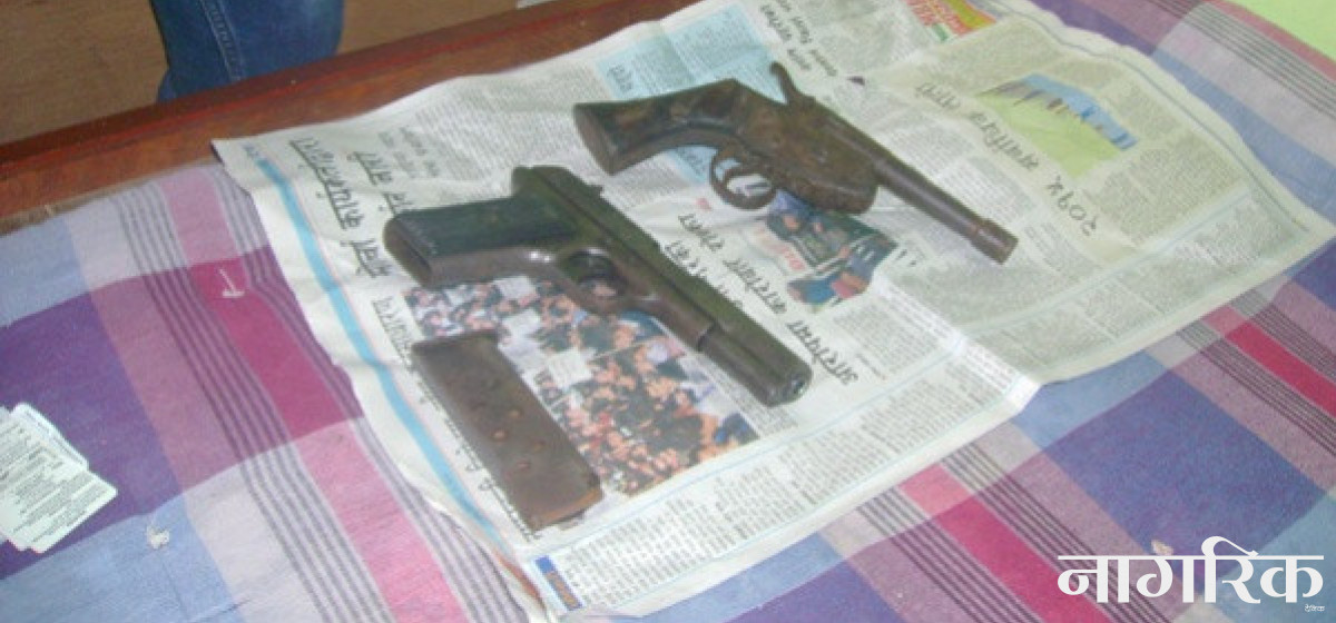 काठमाडौं—भगौडा प्रहरी छोटेलाल ठाकुरबाट बरामद भएको पेस्तोल प्रहरीकै भएको खुलेको छ। खिचापोखरी स्थित लुम्बिनी पाहुना घरमा रहेका ठाकुरलाई महानगरीय अपराध महशाखाको टोलीले गोली हानेर आज पक्राउ गरेको थियो।