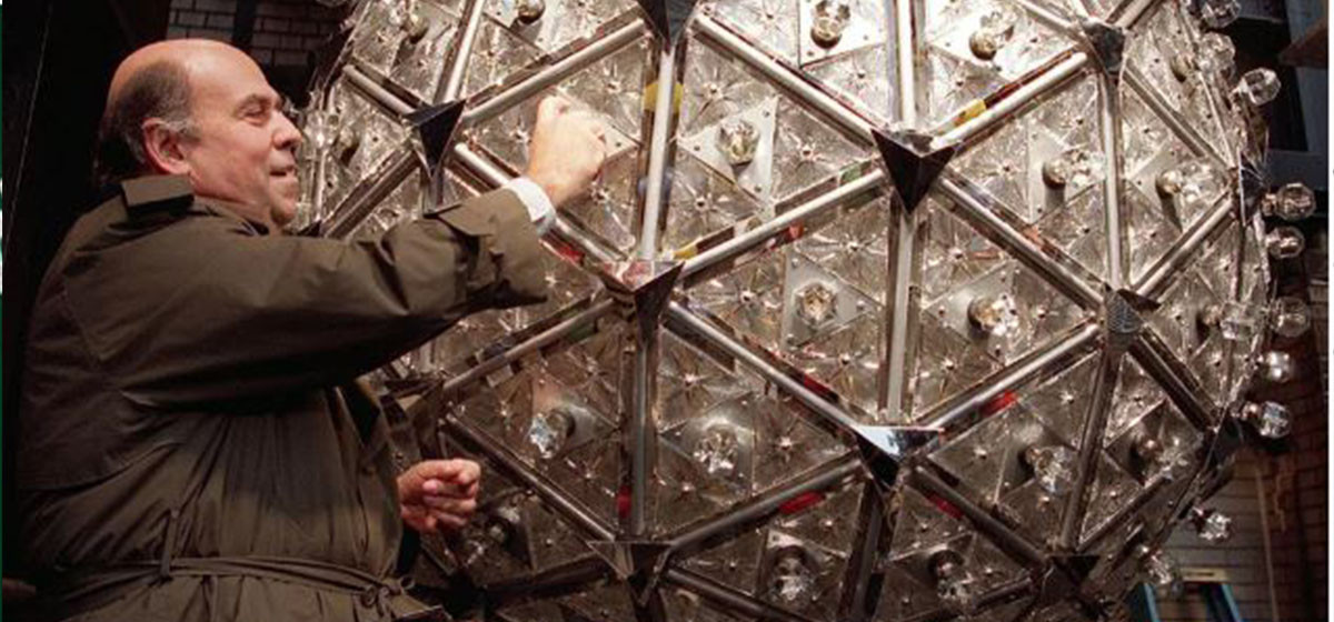 फलाम र काठबाट बनाएको पहिलो बल करिब ७०० पाउन्ड तौल र २५ वाटका बत्तीहरूले सजाइएको थियो। यसको डिजाइनर इलेक्ट्रिक साइन डिजाइनर ज्याकब स्टार थिए।