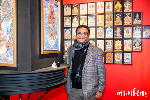 महाराजगञ्जस्थित काठमाडौं आर्ट ग्यालरीको भित्तामा चित्रकार लोक चित्रकारका एक सय आठवटा लोकेश्वरमा आधारित र अन्य चारवटा ठूला पौवा चित्र प्रदर्शनीमा राखिएका छन्।