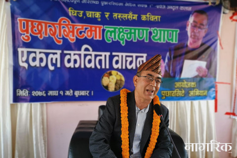 पोखराको साहित्यिक संस्था पुछारसिटे अभियानले माघे संक्रान्तिका दिन घिउ, चाकुसँगै कविताको स्वाद चखाएको छ। उसले आफ्नो पाँचौ एकल वाचनको सृङखलामा कवि लक्ष्मण थापालाई उभ्याएर कविता र चाकुको स्वाद चखाएको हो।