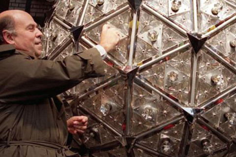 फलाम र काठबाट बनाएको पहिलो बल करिब ७०० पाउन्ड तौल र २५ वाटका बत्तीहरूले सजाइएको थियो। यसको डिजाइनर इलेक्ट्रिक साइन डिजाइनर ज्याकब स्टार थिए।
