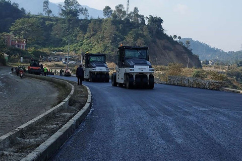 दोविल्ला–फलेवास–लुङ्खु–हुवास सडकअन्तर्गत लुङ्खु–हुवास खण्डमा धमाधम कालोपत्र भइरहेको छ।