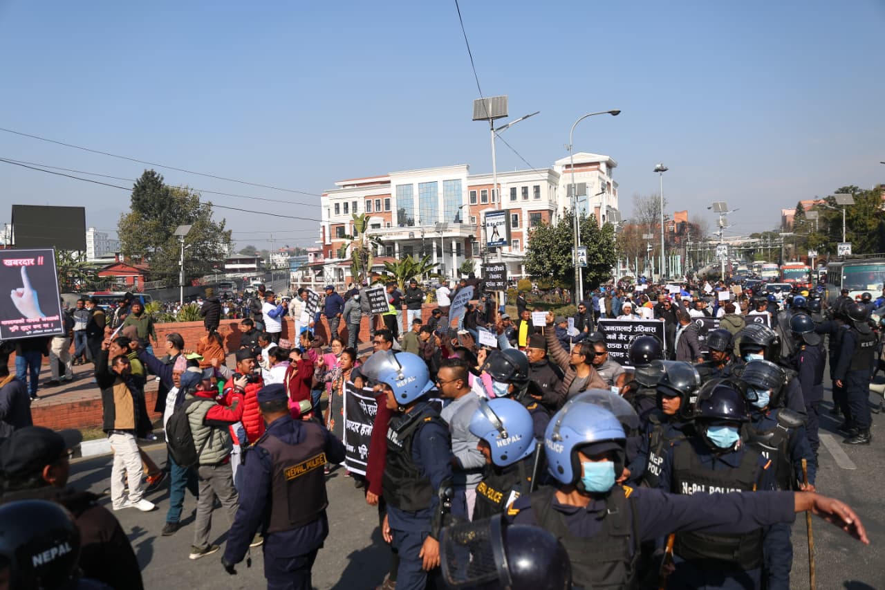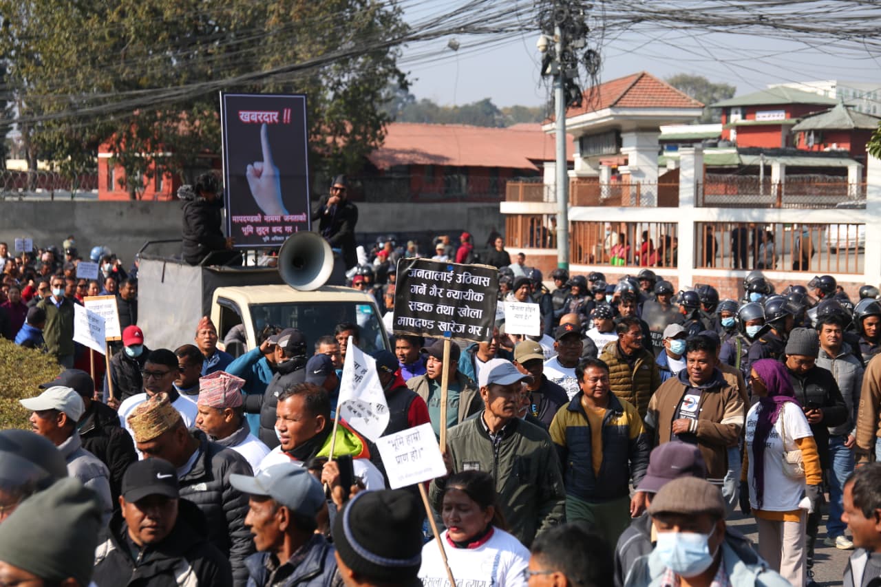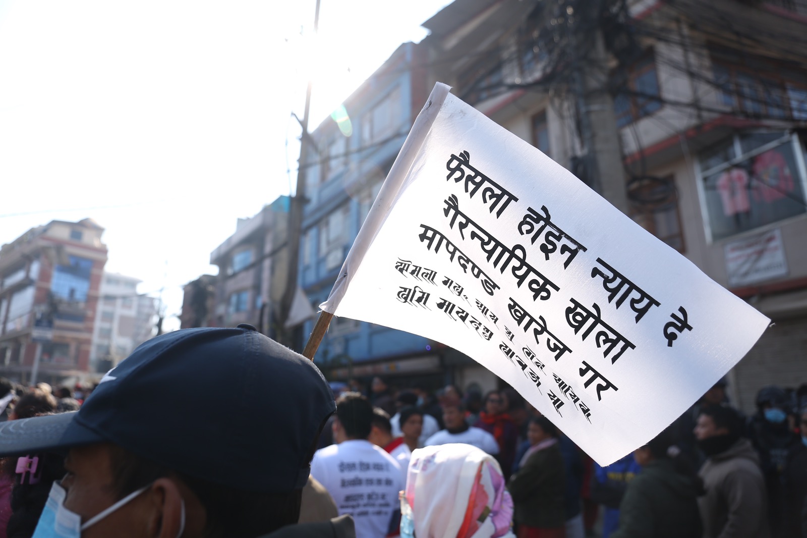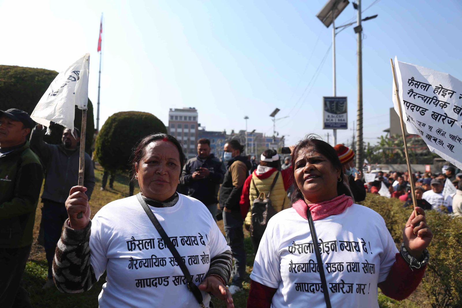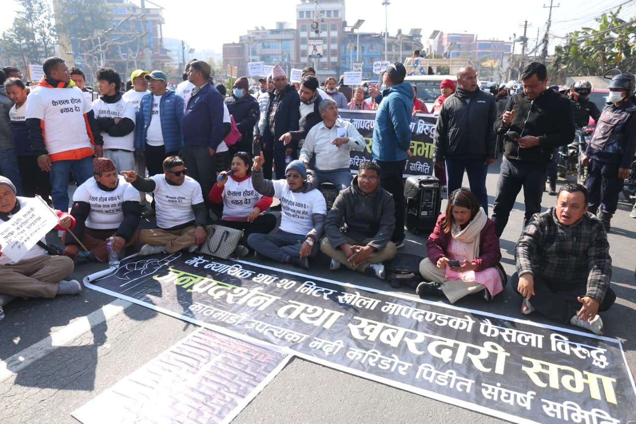 आज माइतीघर मण्डलामा पीडितहरूले नाराबाजी गर्दै प्रदर्शन गरेका हुन्। गैर न्यायिक खोला मापदण्ड खारेजीको माग गर्दै साँचल सङ्घर्ष समिति, विष्णुमति करिडोर (चमति) तदर्थ समिति, संयुक्त खोला मापदण्ड प्रभावित सङ्घर्ष समिति, बागमती–मनोहरा सरोकार समितिको आयोजनामा विरोध प्रदर्शन गरिएको हो।