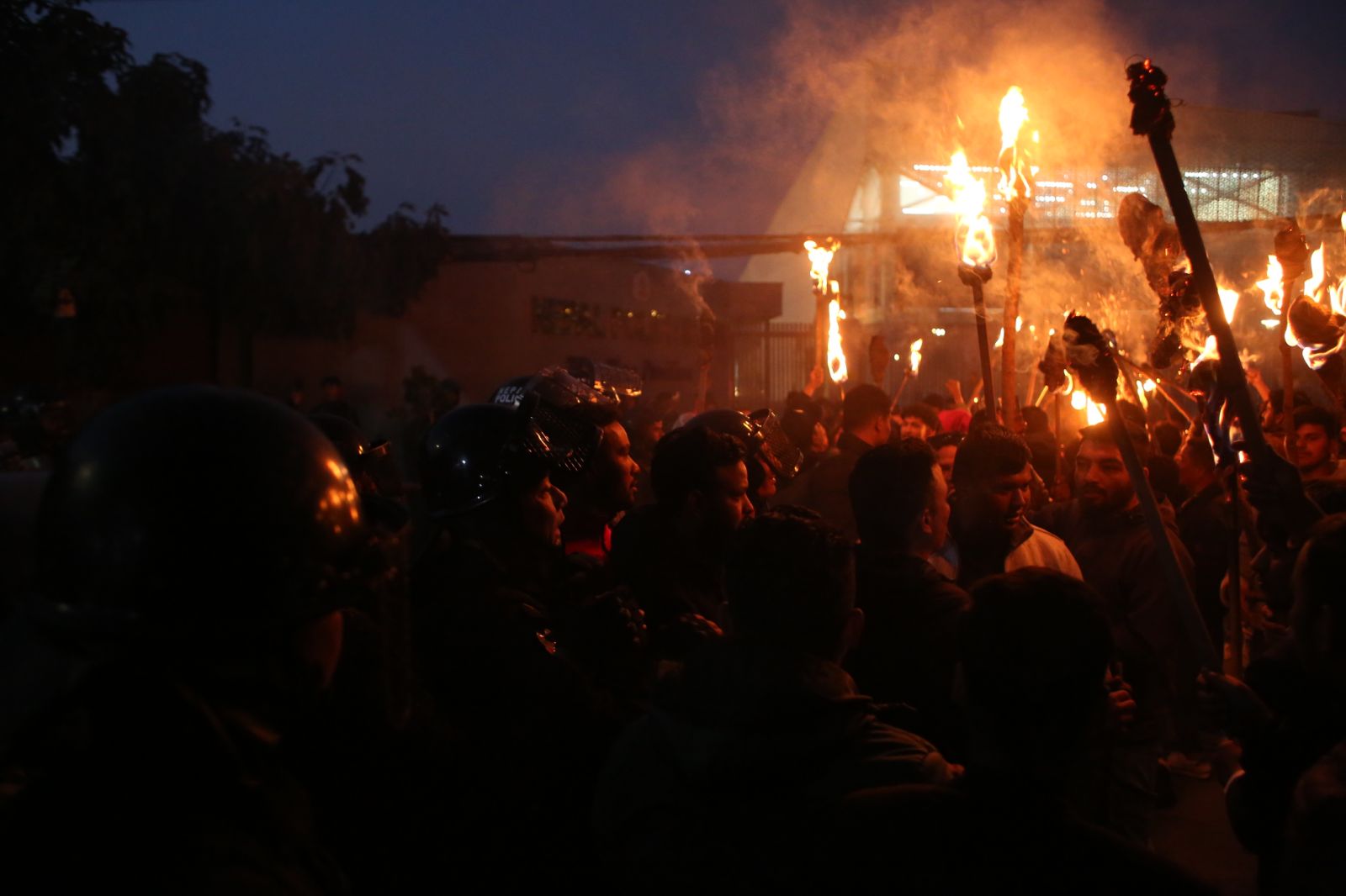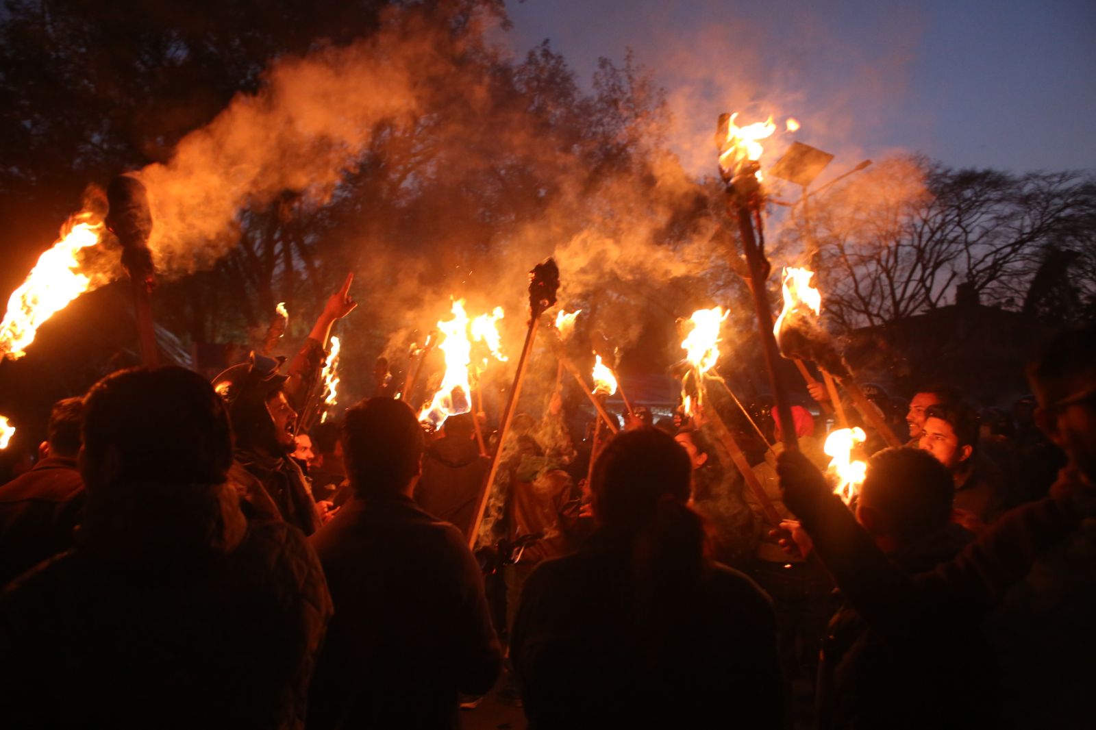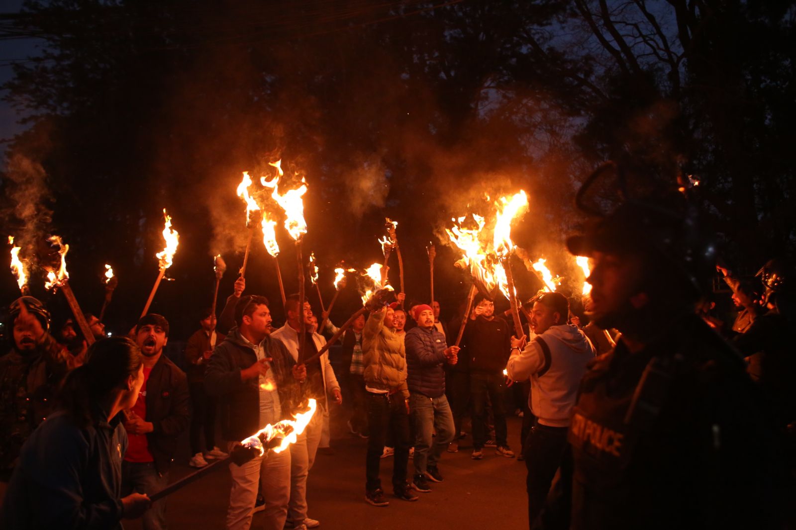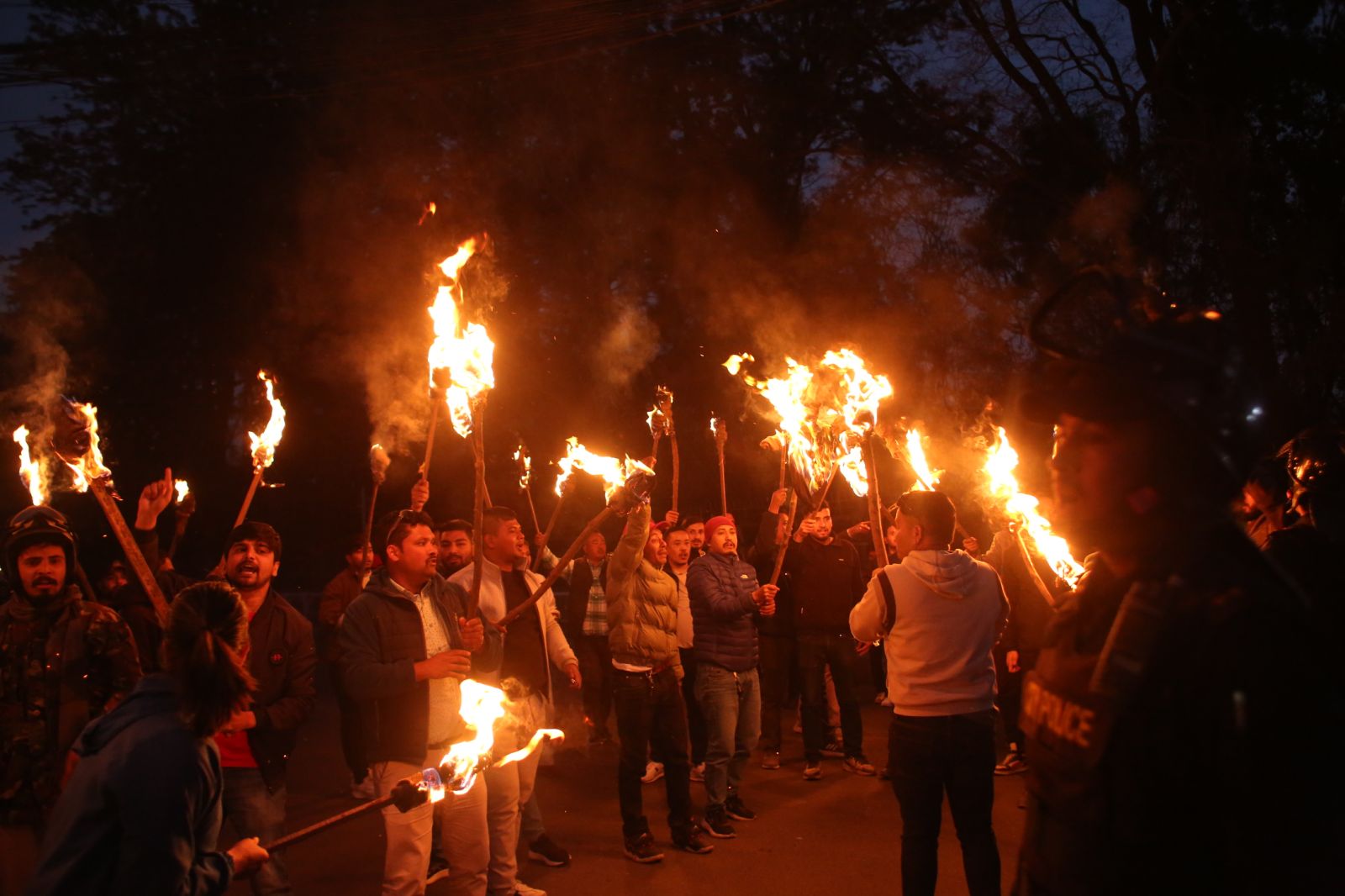 अनेरास्ववियुले आरआर क्याम्पसबाट मसाल जुलुस निकालेको हो। विद्यार्थीहरूले भृकुटीमण्डपमा बालेन्द्र शाहको पुत्ला पनि जलाएका छन् भने रास्वपाविरुद्ध नाराबाजी समेत गरेका छन्।