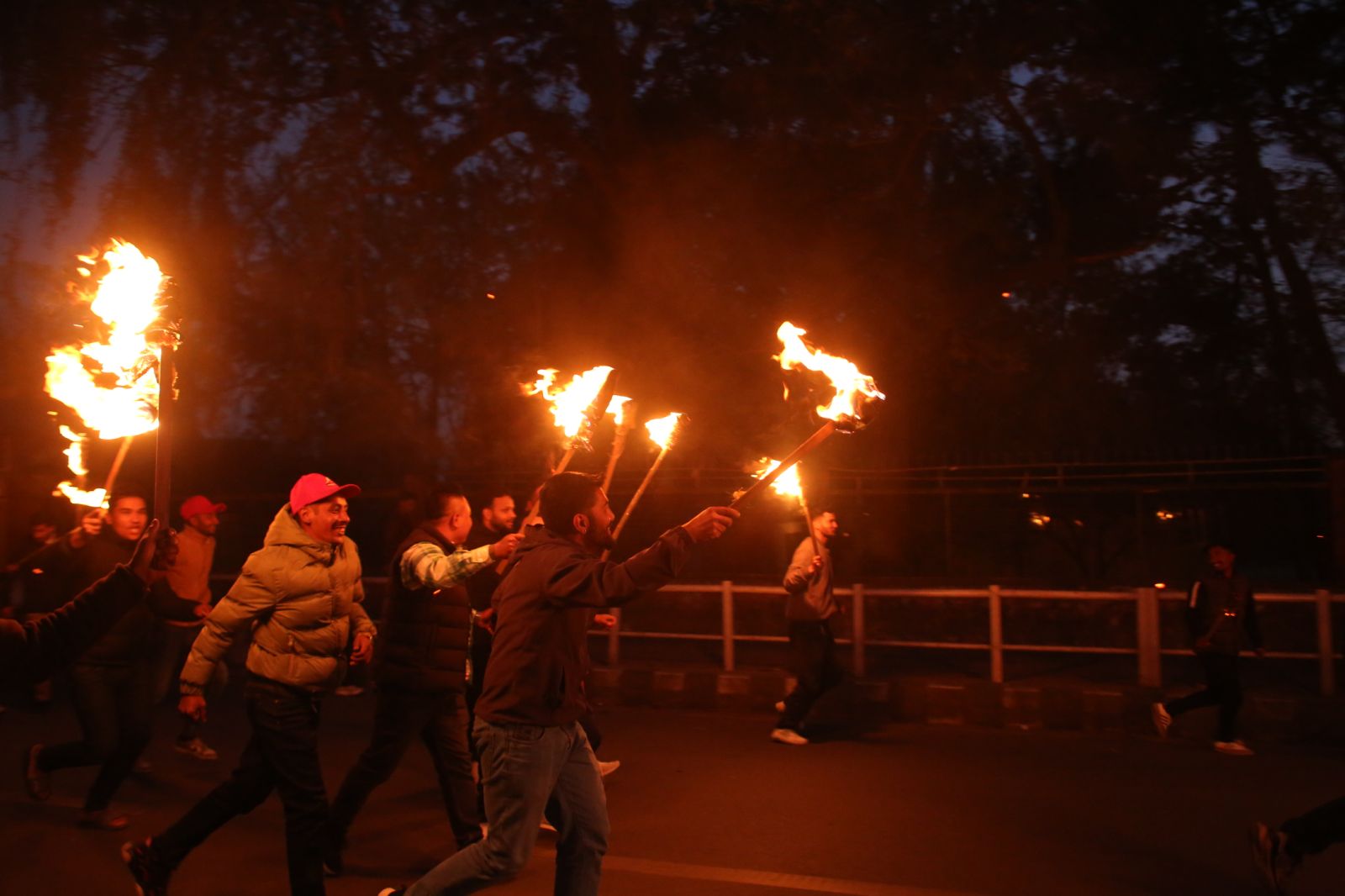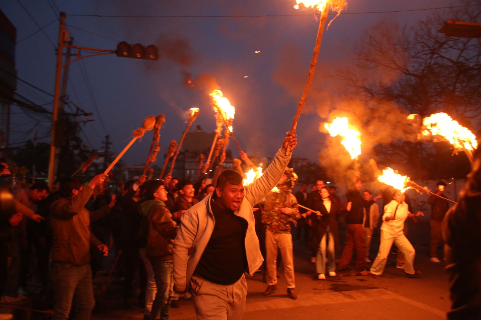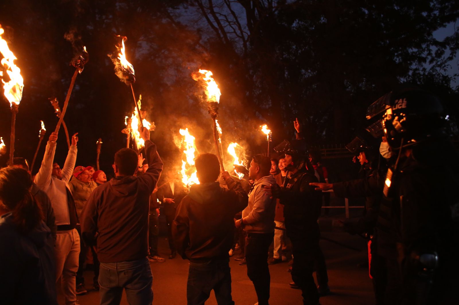 अनेरास्ववियुले आरआर क्याम्पसबाट मसाल जुलुस निकालेको हो। विद्यार्थीहरूले भृकुटीमण्डपमा बालेन्द्र शाहको पुत्ला पनि जलाएका छन् भने रास्वपाविरुद्ध नाराबाजी समेत गरेका छन्।