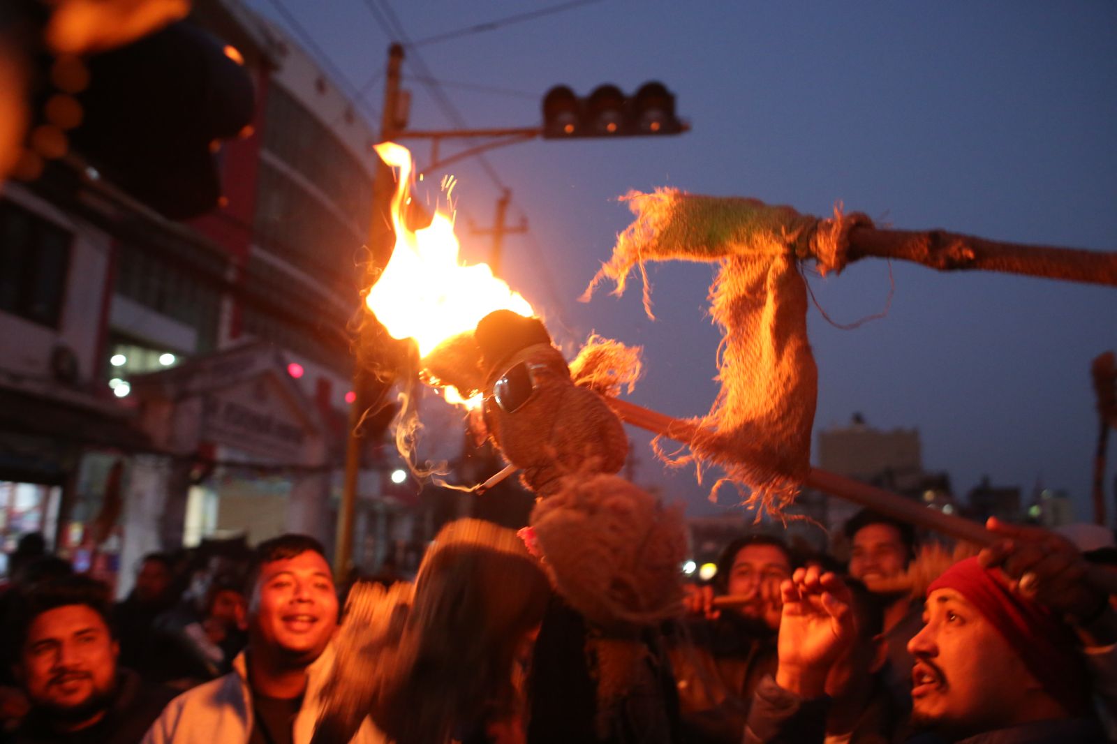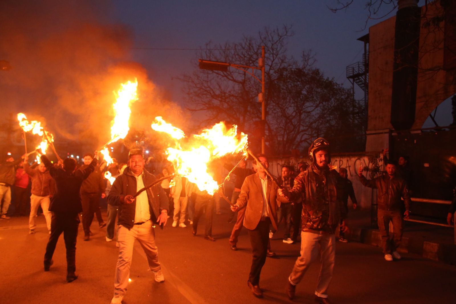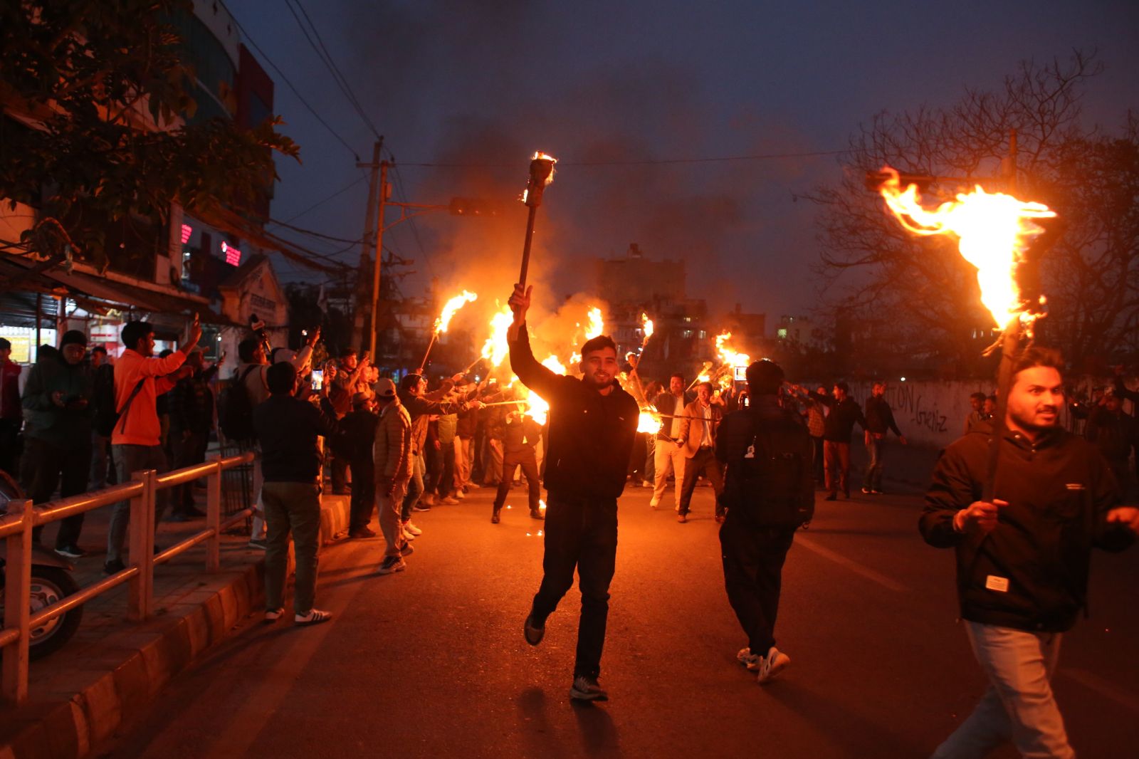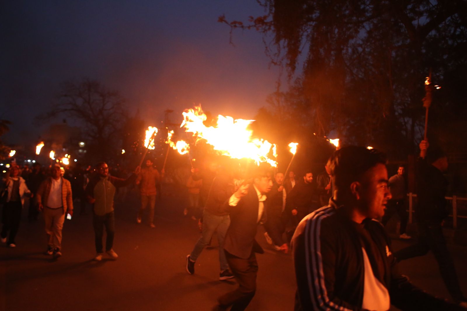 अनेरास्ववियुले आरआर क्याम्पसबाट मसाल जुलुस निकालेको हो। विद्यार्थीहरूले भृकुटीमण्डपमा बालेन्द्र शाहको पुत्ला पनि जलाएका छन् भने रास्वपाविरुद्ध नाराबाजी समेत गरेका छन्।
