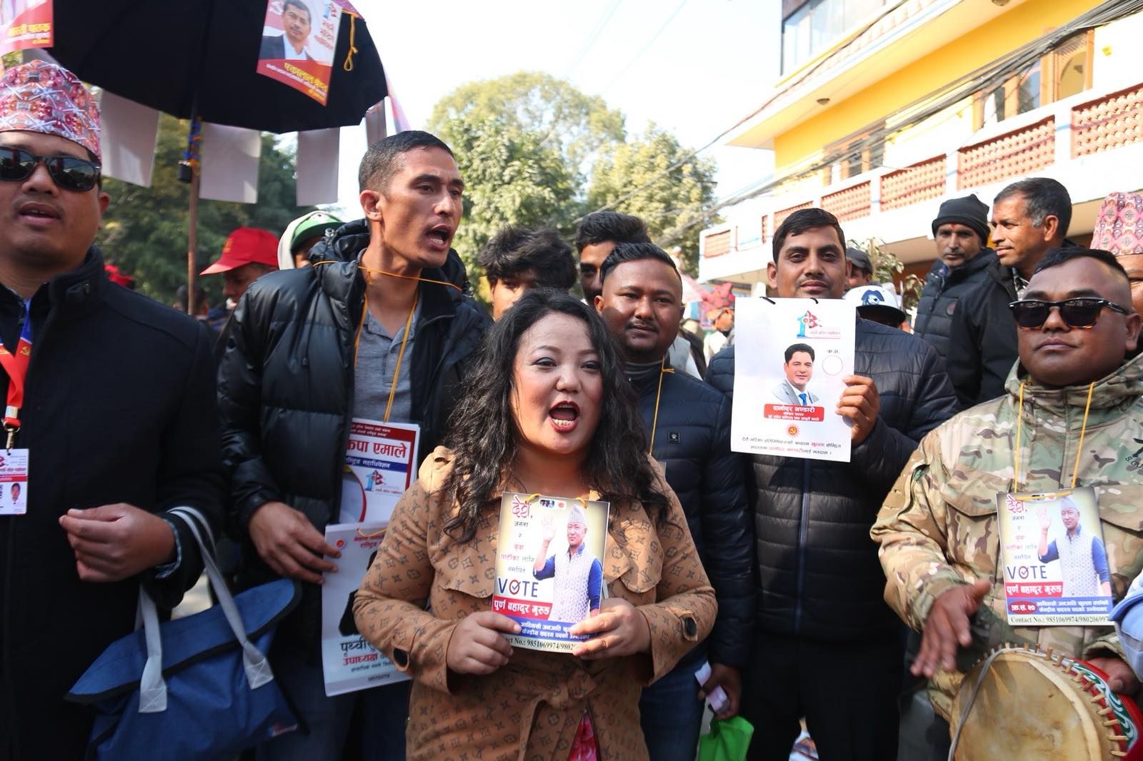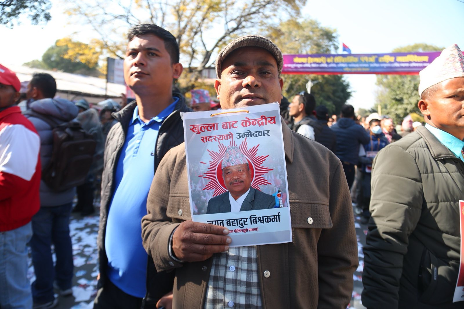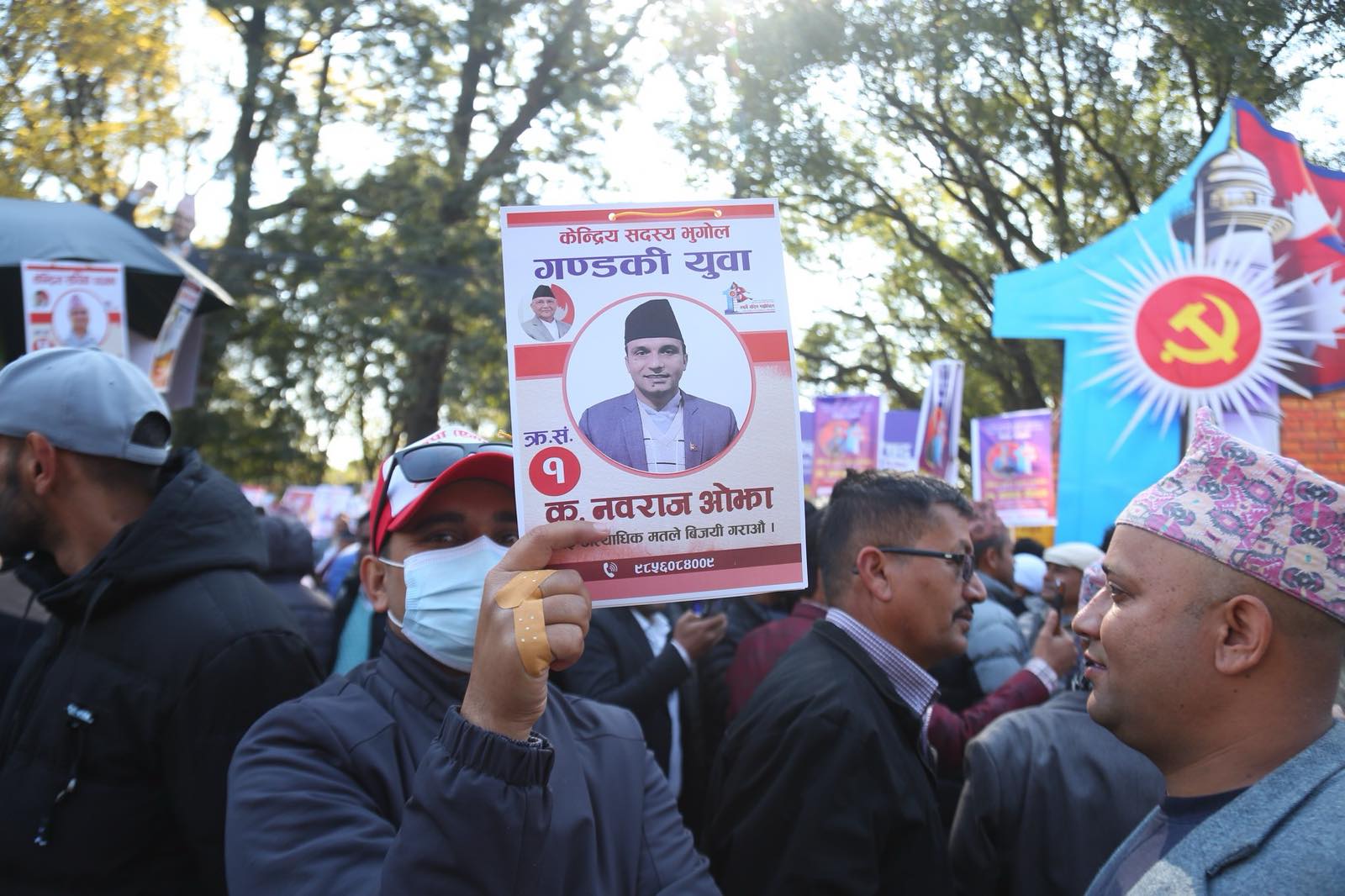 नेकपा एमालेको ११औँ राष्ट्रिय महाधिवेशनस्थल भृकुटीमण्डपमा चुनावी रौनक छाएको छ। उम्मेदवार र समर्थकहरू साना-साना समूह बनाएर मत माग्दै प्रदर्शन गरिरहेका छन्।