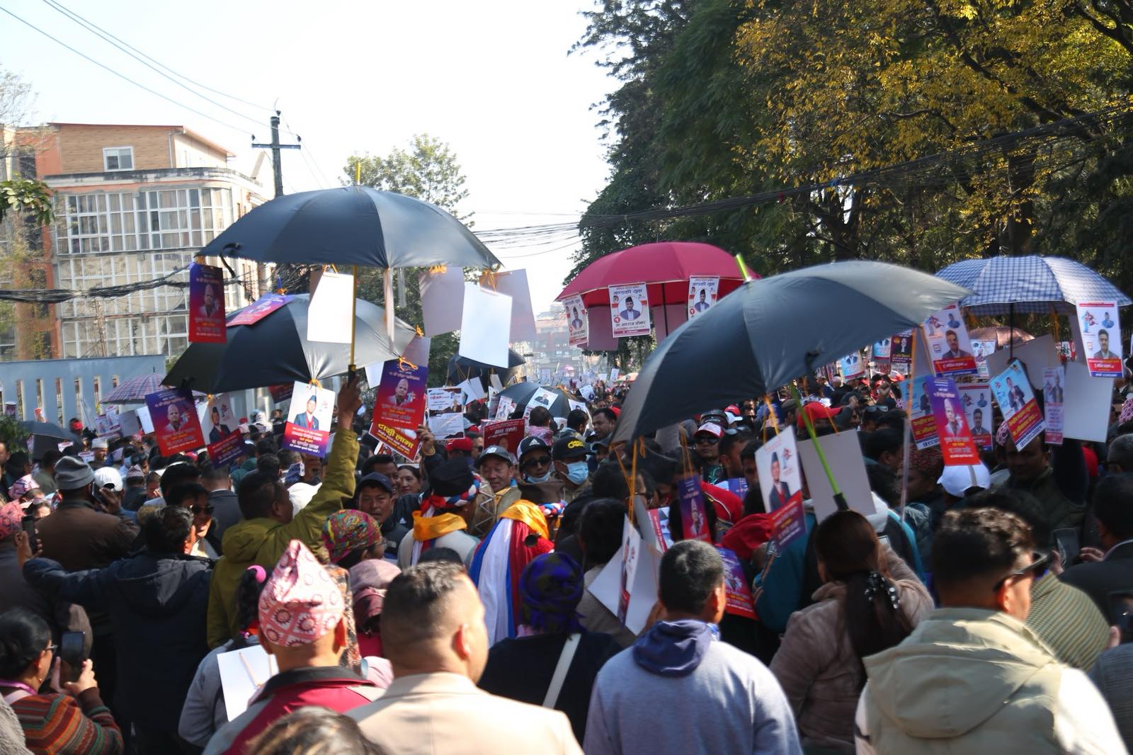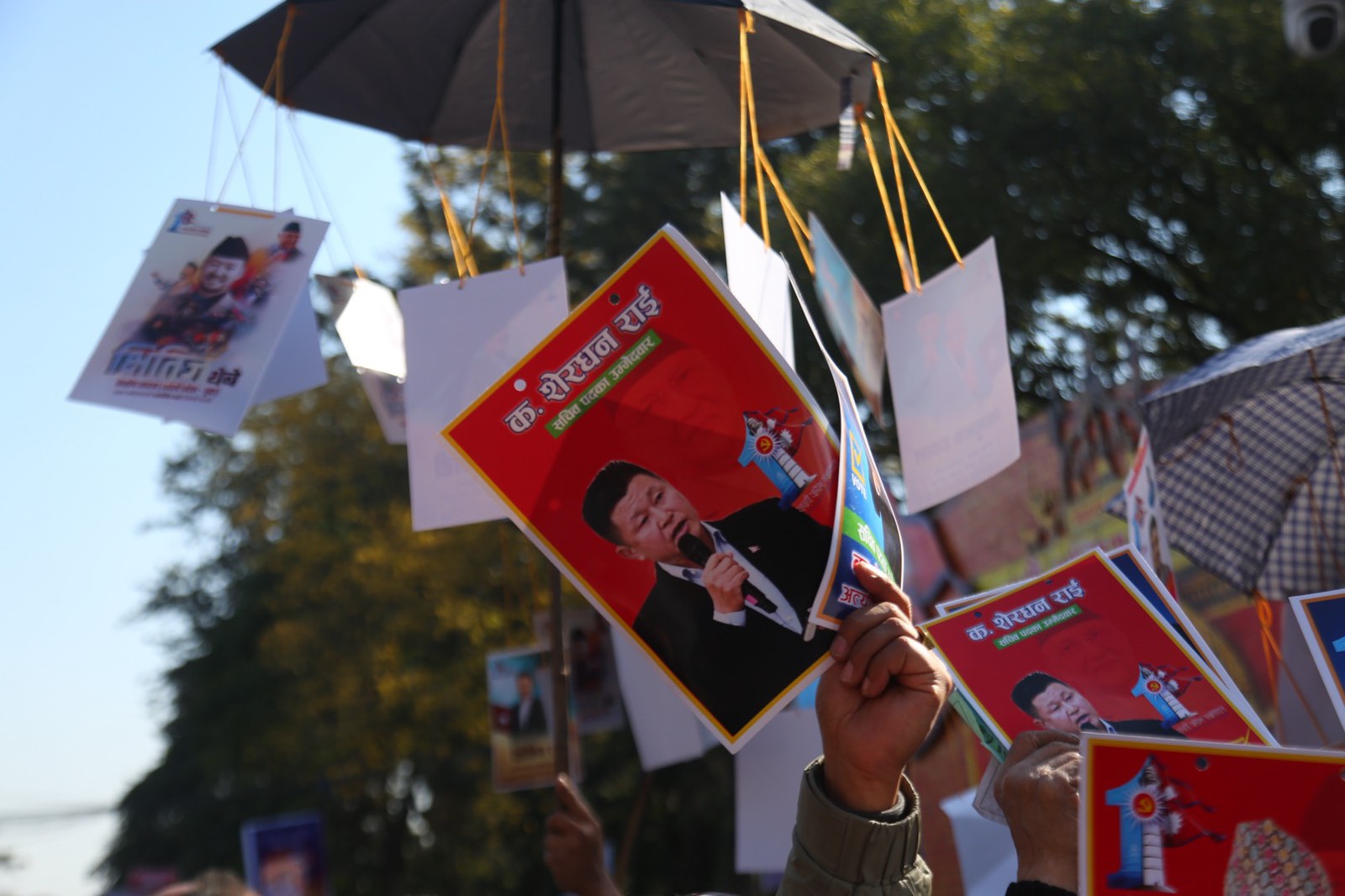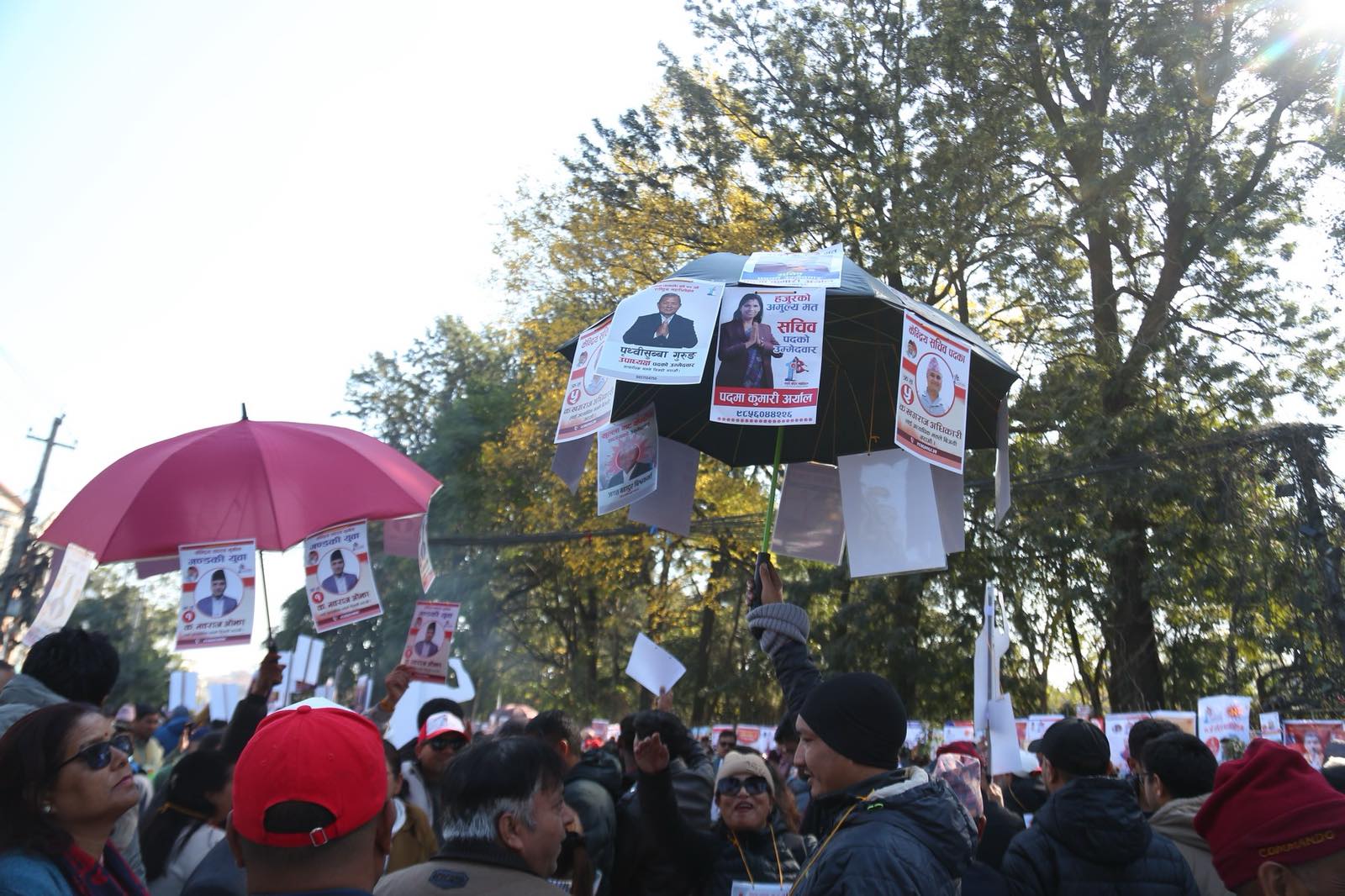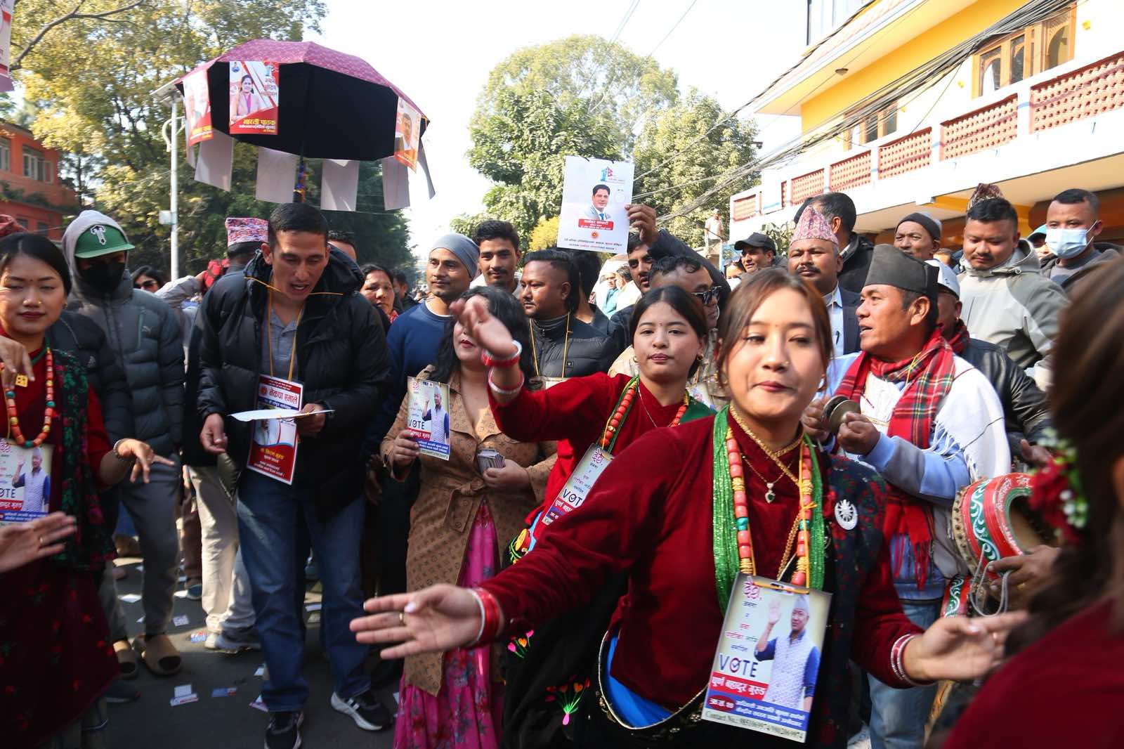 नेकपा एमालेको ११औँ राष्ट्रिय महाधिवेशनस्थल भृकुटीमण्डपमा चुनावी रौनक छाएको छ। उम्मेदवार र समर्थकहरू साना-साना समूह बनाएर मत माग्दै प्रदर्शन गरिरहेका छन्।