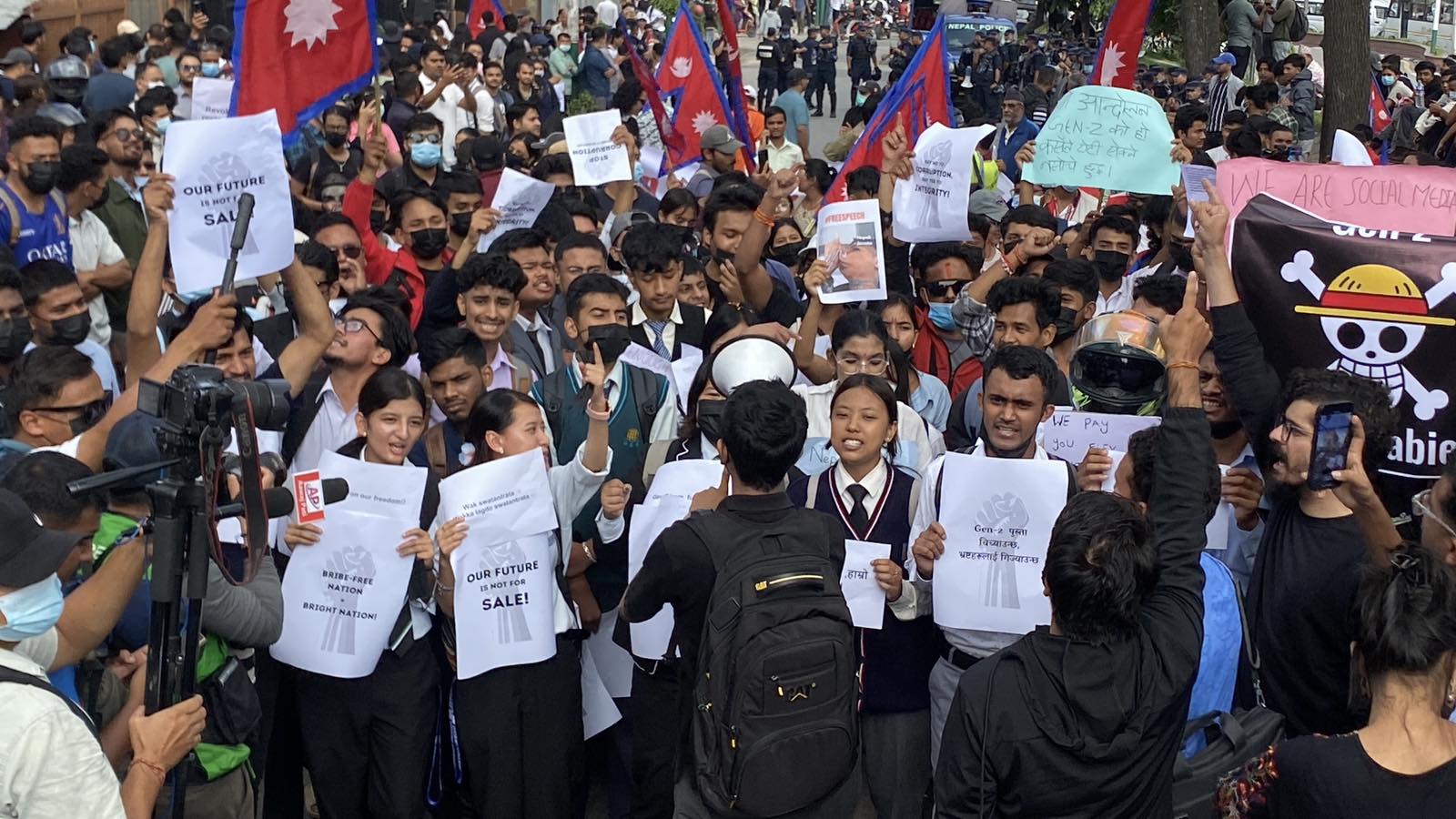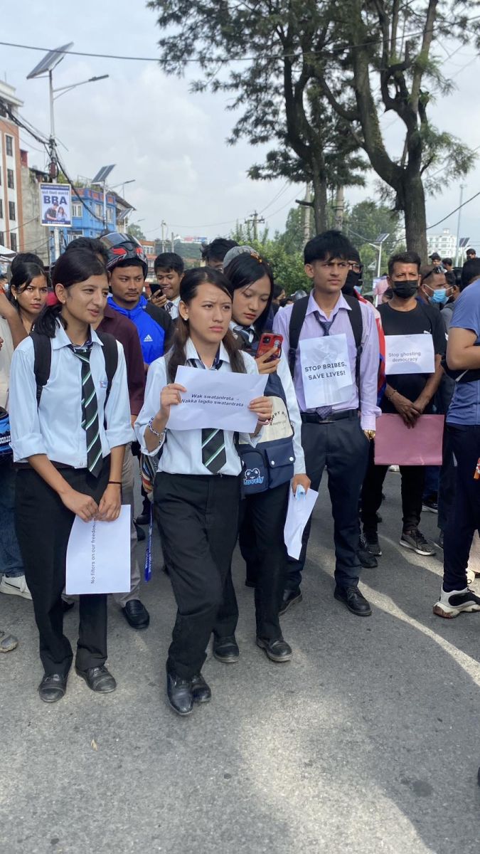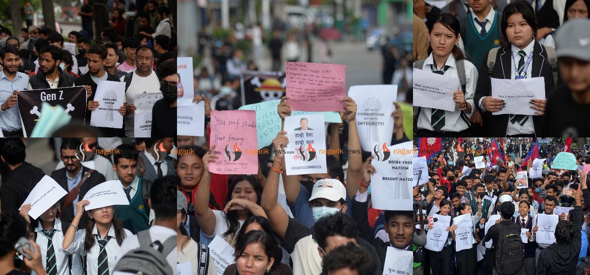 भ्रष्टाचार, विशेषाधिकार र सरकारको सामाजिक सञ्जाल प्रतिबन्धविरुद्ध जेन–जी पुस्ताले आन्दोलन सुरु भएको छ। सोमबार बिहानदेखि माइतीघरमा विभिन्न प्लेकार्ड बोकेर उनीहरू सडकमा निस्किएका छन्।