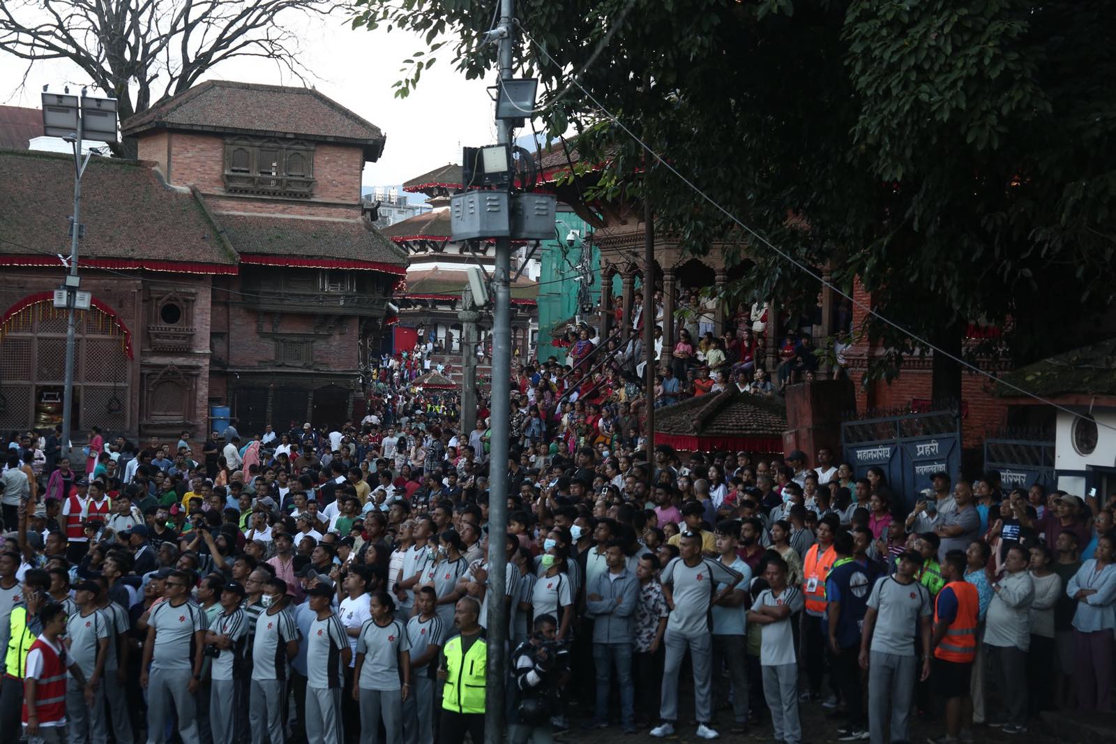 गत बिहीवार औपचारिक रूपमा वसन्तपुरस्थित हनुमानढोका क्षेत्रमा सुरु भएको जात्रा अन्तिम दिन महिलाहरूले रथ तानेर समापन गर्ने परम्परा भए पनि यस वर्ष त्यसो गर्न सकेनन्। यस विधिलाई नेवारी भाषामा नानीचाया: भनिन्छ।